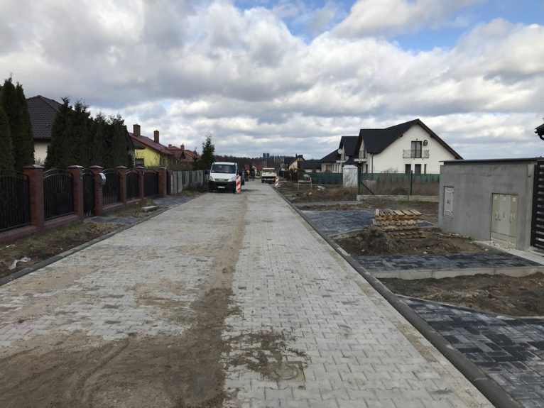Inwestycja obejmuje wykonanie dwóch odcinków dróg. Na drodze biegnącej śladem działki nr 94/15 od zjazdu z wybudowanej w 2017 roku drogi publicznej do połączenia z drogą biegnącą śladem działki nr 93 zaplanowany jest następujący zakres: nawierzchnia z kostki betonowej, wjazdy, dojścia do furtek i miejsc składowania odpadów, odwodnienie drogowe, oznakowanie docelowe uwzględniające elementy uspokojenia ruchu, długość tego odcinka to około 300 m i szerokość 5 m.