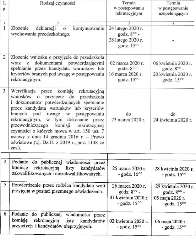 25 marca przedszkola wywieszą listy zakwalifikowanych i niezakwalifikowanych, a do 1 kwietnia rodzice będą mieli czas, by potwierdzić, że chcą, aby ich dziecko uczęszczało do danej placówki. 6 kwietnia ruszy rekrutacja uzupełniająca. Poniżej publikujemy szczegółowy harmonogram.