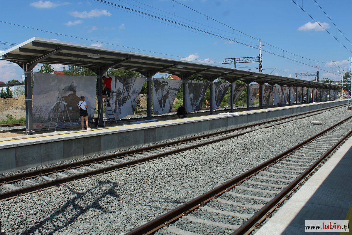 Równocześnie na peronach trwa montowanie ogromnych zdjęć, oczywiście nawiązujących do kolei.