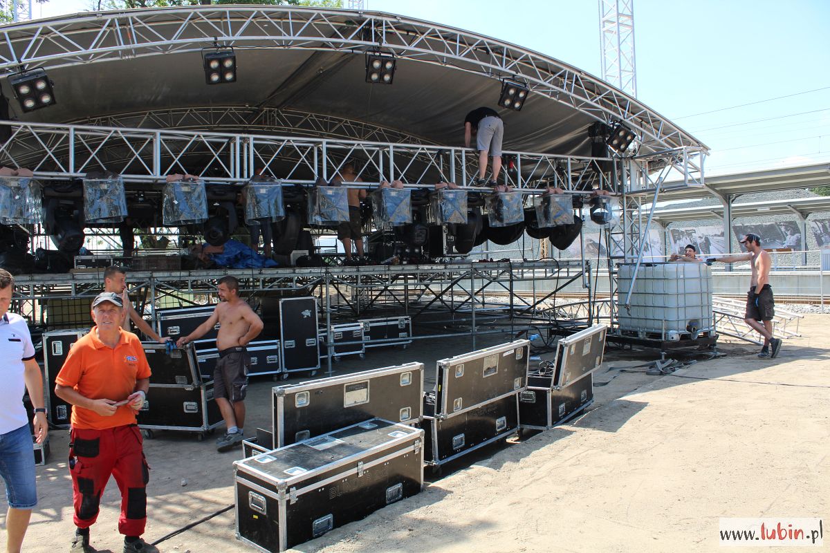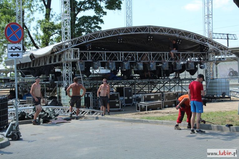– W środę rano przyjechały elementy sceny, jej wyposażenia i zadaszenia. Przy całości tego projektu w sumie pracować będzie kilkadziesiąt osób – mówi Piotr Midziak, prezes Regionalnego Centrum Sportowego w Lubinie, jednego z organizatorów sobotniego koncertu. – Dzisiaj przyjeżdżają kolejne elementy, czyli oświetlenie i nagłośnienie, a wieczorem ekrany ledowe – wylicza.