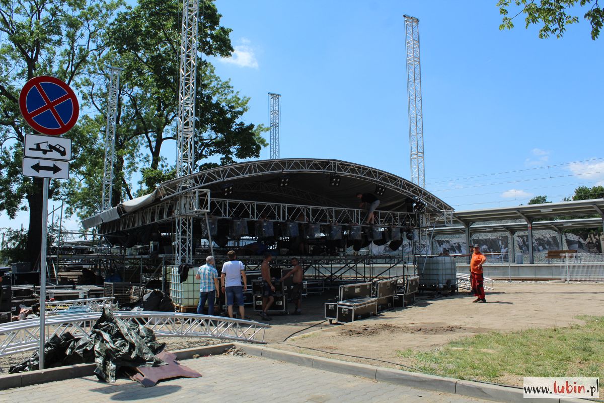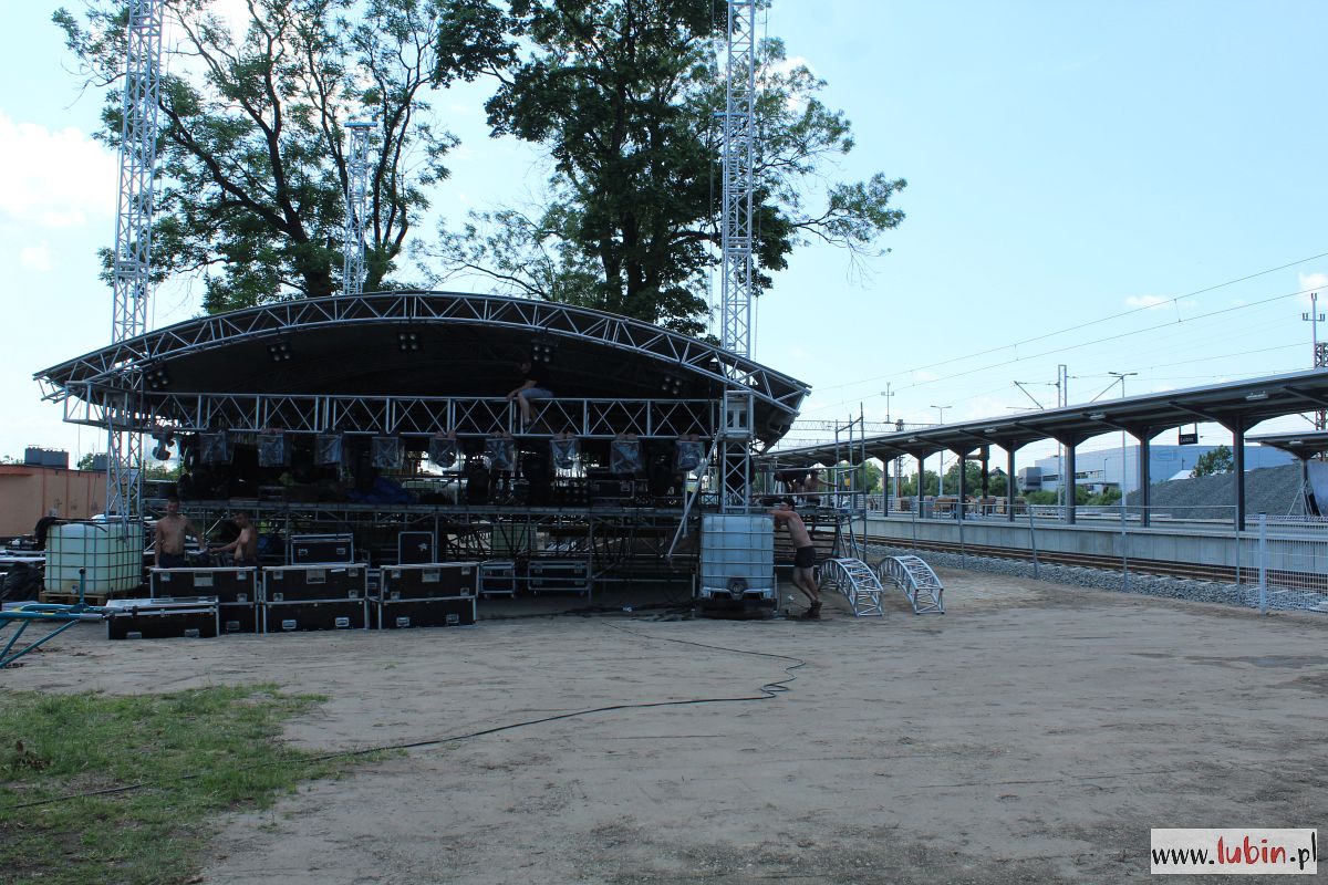 Przy stacji kolejowej w Lubinie sporo się dzieje. Od wczoraj budowana jest scena i trwają przygotowania do wielkiego show, jakie ma się tu odbyć już w najbliższą sobotę, 8 czerwca, na inaugurację powrotu połączeń kolejowych do miasta.