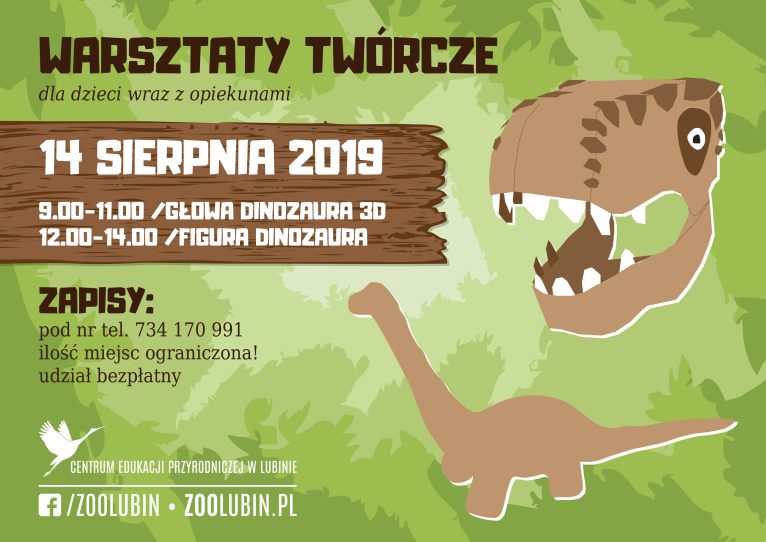 Warsztaty odbędą się 14 sierpnia (w środę) na terenie przy budynku edukacyjnym/kawiarni. W godzinach 9-11 – głowa dinozaura 3D, a o 12-14 – figura dinozaura.