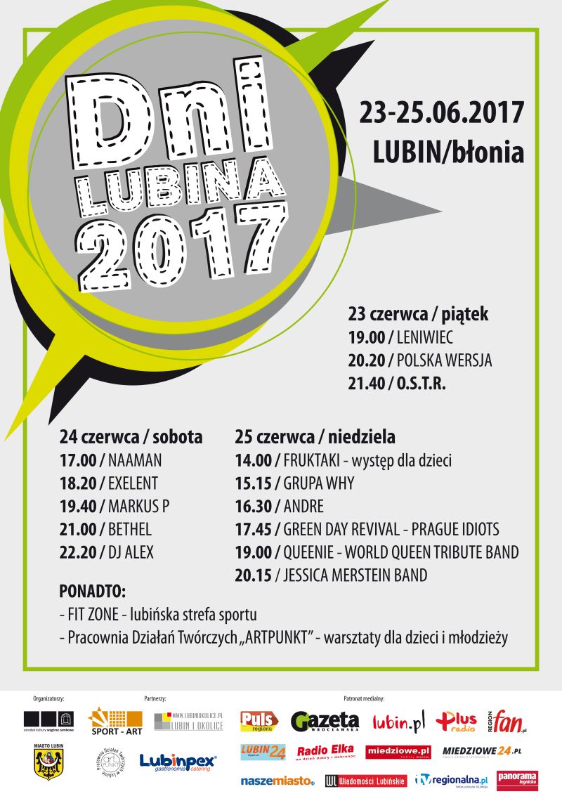Szczegóły na temat Dni Lubina można znaleźć na załączonych plakatach, a o poszczególnych artystach, którzy wystąpią na tegorocznym święcie miasta będziemy pisać w dziale kultura.