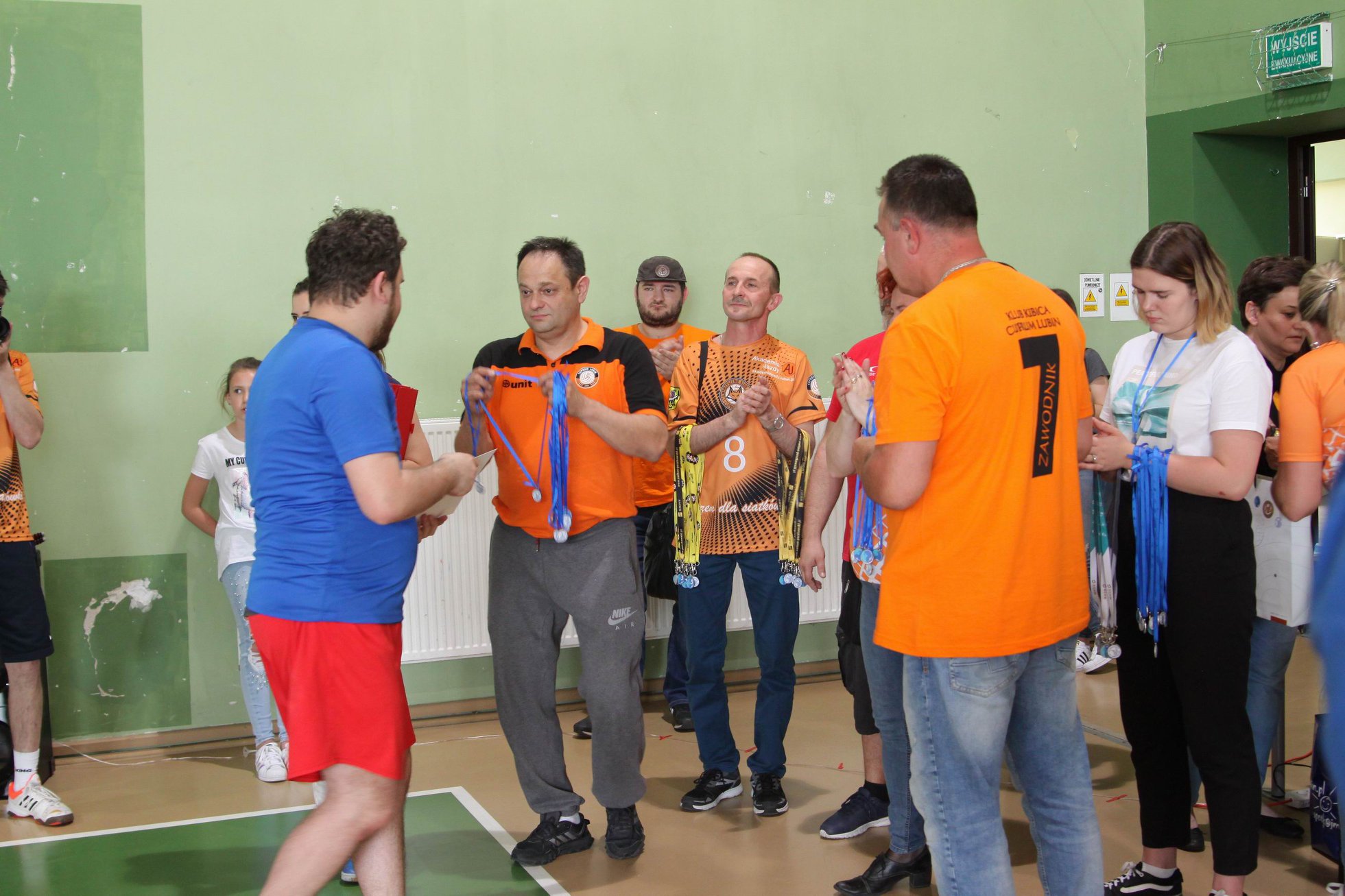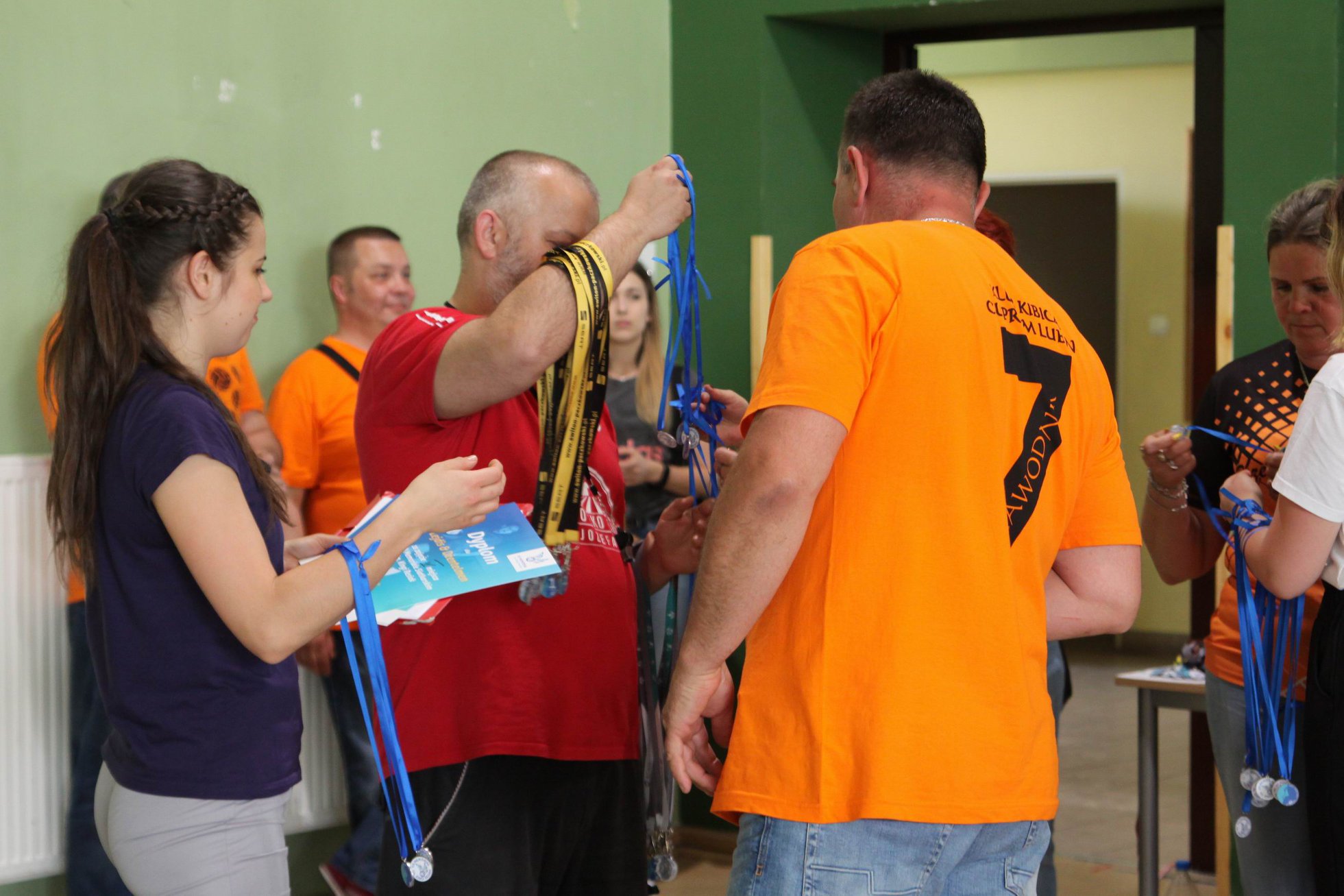 Prezes Klubu Kibica Cuprum Lubin wręcza medale (Fot. Robert Szafrański fotograf KK Cuprum Lubin)