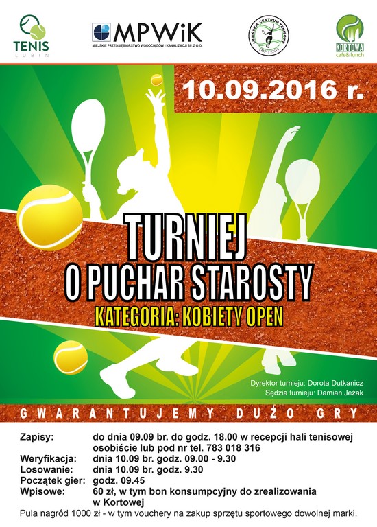 Jeszcze przez dwa dni można zapisywać się na Turniej o Puchar Starosty w kategorii kobiety open, który odbędzie się w sobotę, o godzinie 9.45.