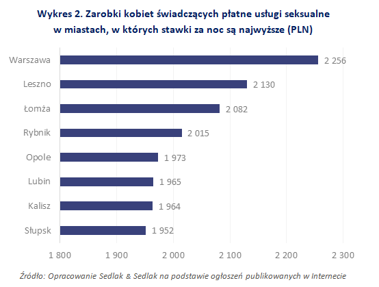 Zestawienie przygotowano na podstawie ponad 10 tys. internetowych ogłoszeń. „Zebrane dane dotyczą kobiet, które swoje usługi seksualne świadczą w prywatnych mieszkaniach, chodzi tu o tzw. mieszkaniówki. W badaniu pominięto panie pracujące w agencjach towarzyskich lub przy trasach tranzytowych i wylotach miast. Jak tłumaczą autorzy raportu wysokość zarobków kobiet świadczących usługi seksualne w mieszkaniach jest zróżnicowana i zależy od jakości świadczonych usług i zamożności grupy docelowej” – czytamy na stronie newsweek.pl