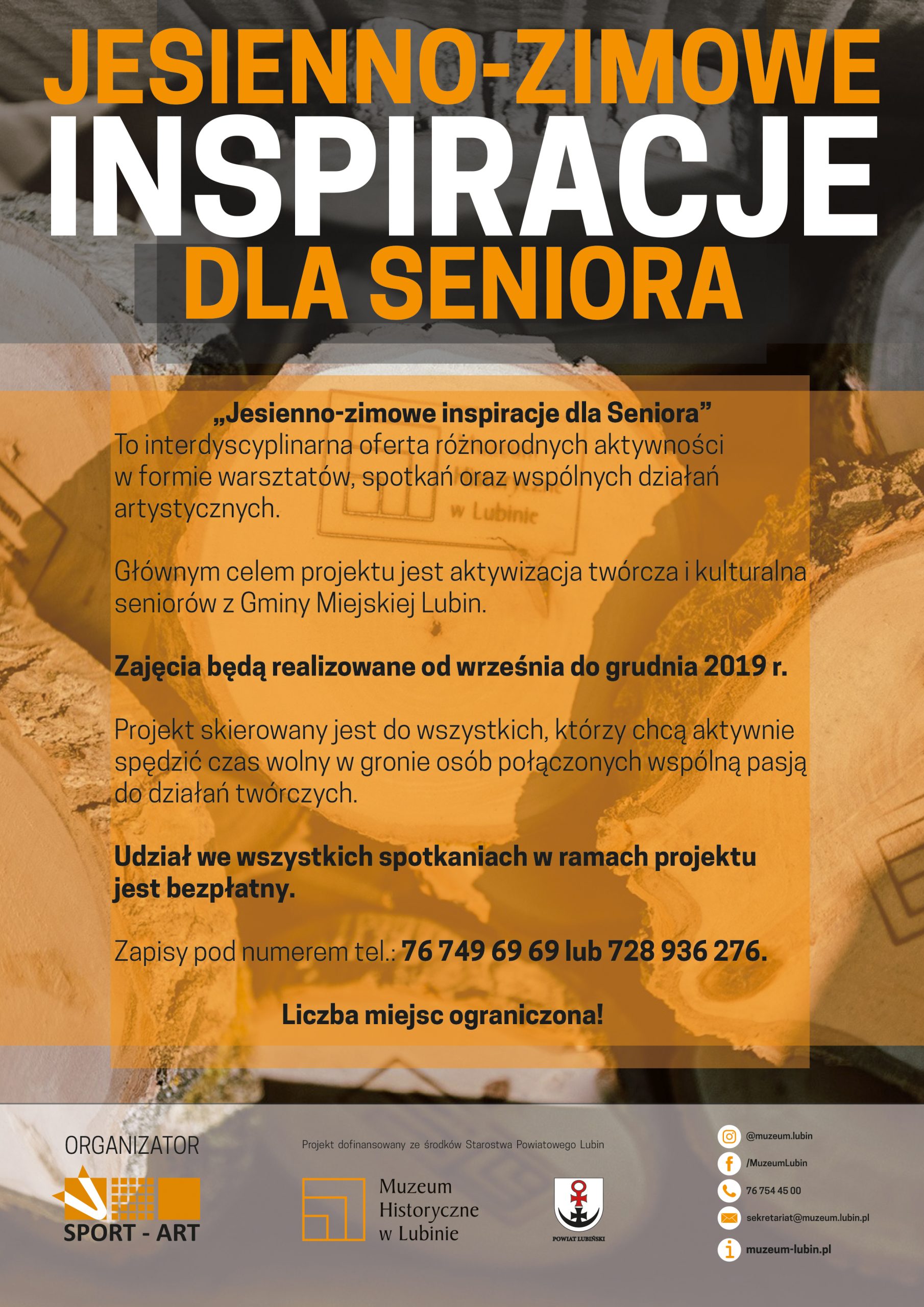 Stowarzyszenie Sport-Art oraz Muzeum Historyczne w Lubinie zapraszają seniorów powiatu lubińskiego do udziału w trzeciej edycji cyklu warsztatów rękodzieniczo-artystycznych „Jesienno-zimowe inspiracje dla seniora”.