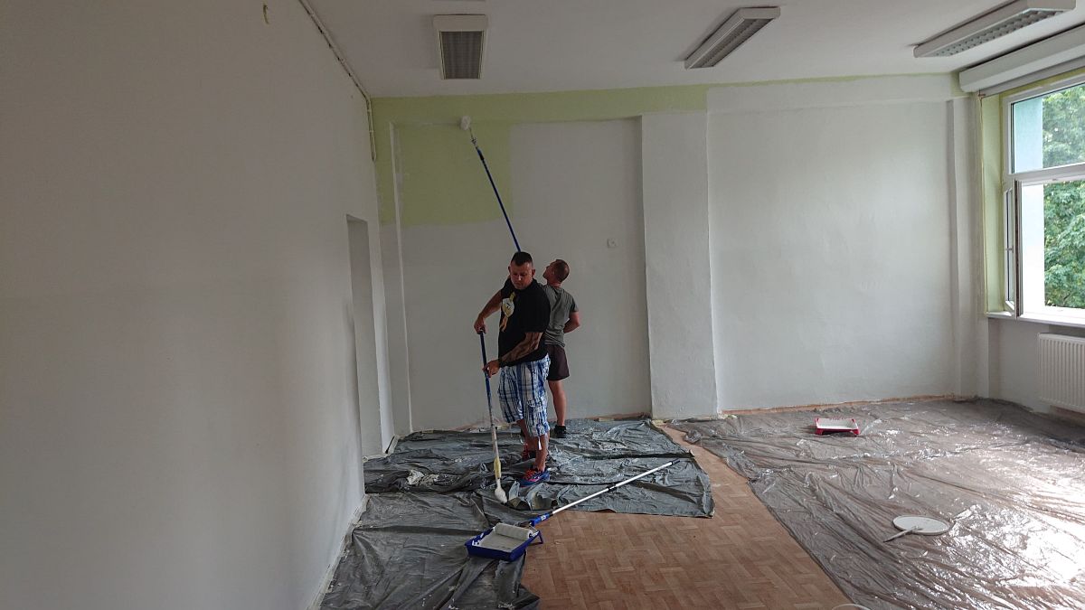 Odświeżanie sal odbywa się popołudniami. Rodzice, których dzieci będą chodzić do tej szkoły, oraz wolontariusze malują ściany i sprzątają tu po godzinach, po wyjściu z pracy.