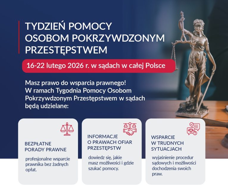 Więcej informacji na temat Tygodnia Pomocy Osobom Pokrzywdzonym Przestępstwem można znaleźć na stronie internetowej Ministerstw Sprawiedliwości TUTAJ.