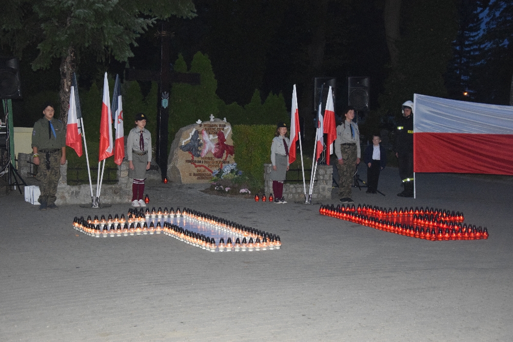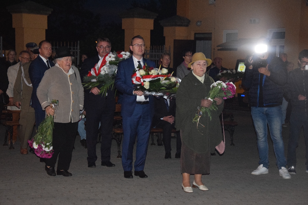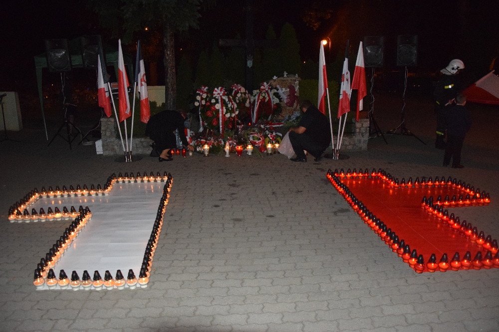 Kwiaty i wieńce składane były w szpalerze kilkuset zniczy ułożonych w biało-czerwony krzyż, które miały upamiętnić wszystkich tych, którzy podczas wywózki na Sybir stracili życie.