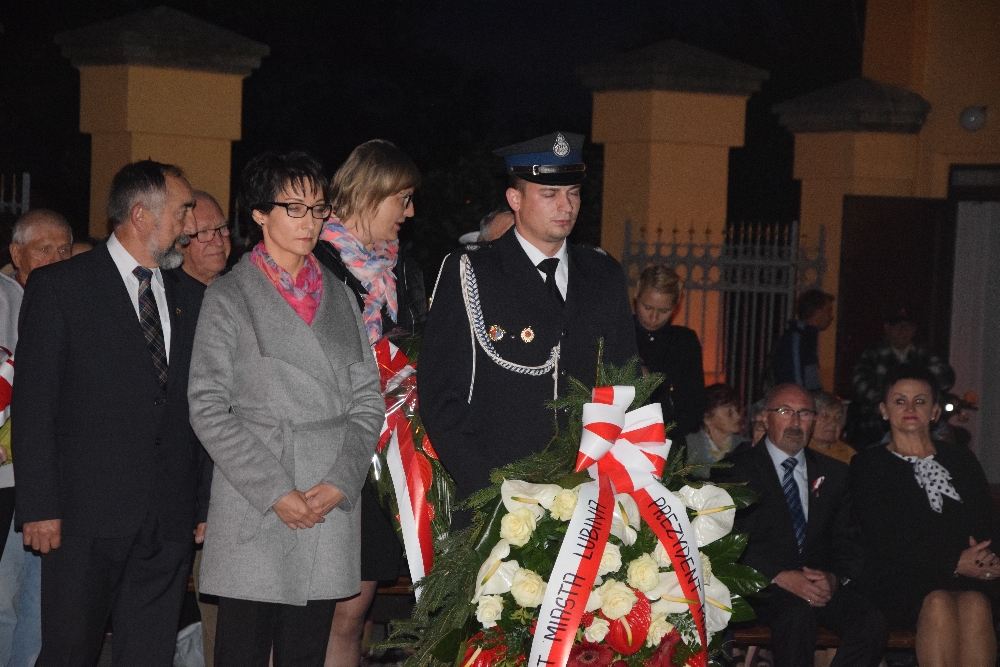 Dzisiejsze uroczystości uświetnili uczniowie z Zespołu Szkół Sportowych w Lubinie, którzy zaprezentowali poruszający montaż słowno–muzyczny oraz funkcjonariusze OSP w Lubinie.