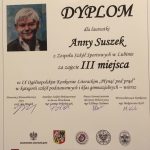 To nie jest jedyne osiągnięcie uczennicy SP 7 w Lubinie. W kwietniu Anna Suszek otrzymała wyróżnienie za wiersz pt. „Przeciętność” w 9. edycji konkursu poetyckiego „Młody Poeta Dolnego Śląska” zorganizowanego przez Dolnośląską Bibliotekę publiczną im. T. Mikulskiego we Wrocławiu.