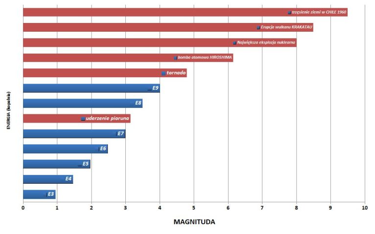 „Dziewiątki”, czyli wstrząsy, których wykładnik potęgi energii wyniósł 9 (np. 1,5×109 dżula, jak to miało miejsce w lipcu tego roku), to zdarzenia maksymalne zarejestrowane w KGHM, ale skale sejsmiczne są otwarte – nie mają górnej granicy. Geofizycy i specjaliści od zagrożeń tąpaniami nie chcą jednak nawet sobie wyobrażać skutków „dziesiątki”.