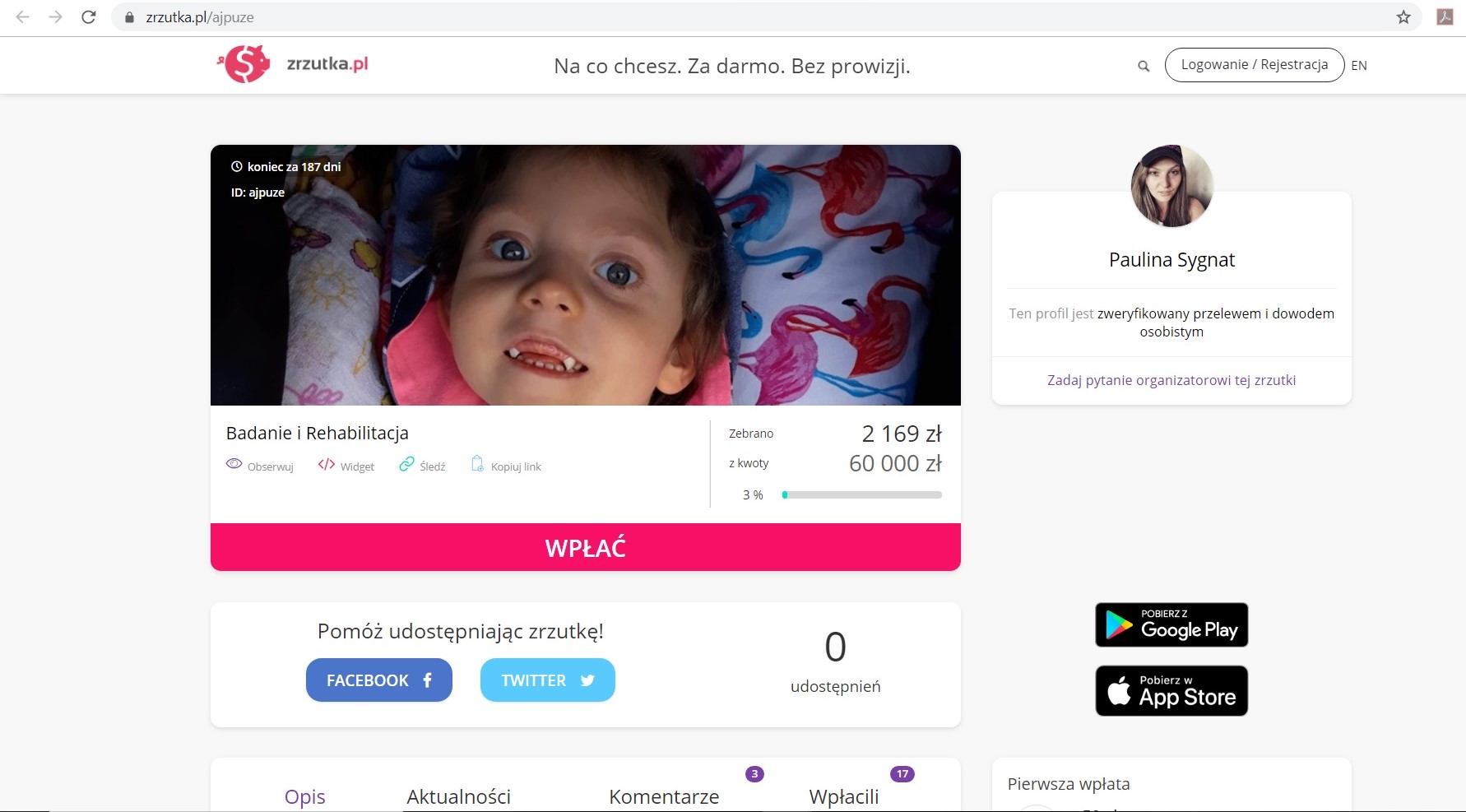 Kradzież puszki to była pierwsza tego typu sytuacja. Może warto przy tej okazji pokazać, że lubinianie mają wielkie serca i właśnie teraz dorzucić się do leczenia Agaty. Jeśli nie do puszki, to zachęcamy, by zrobić to przez portal zrzutka.pl TUTAJ.