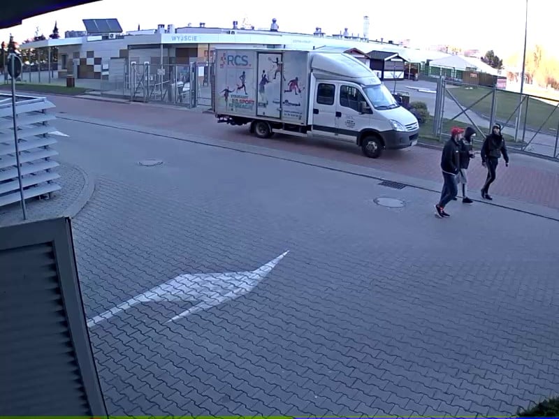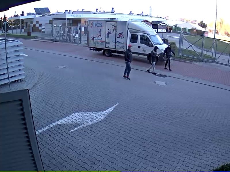 Pierwszy mężczyzna ubrany był w czarną kurtkę, jeansowe spodnie, a na głowie miał czerwoną czapeczkę z daszkiem. Drugi miał ciemną kurkę i ciemne spodnie, a na głowie kaptur. Trzeci również miał naciągnięty kaptur, ubrany był w jasne spodnie dresowe, czarno-białą kurtkę i ciemne buty.