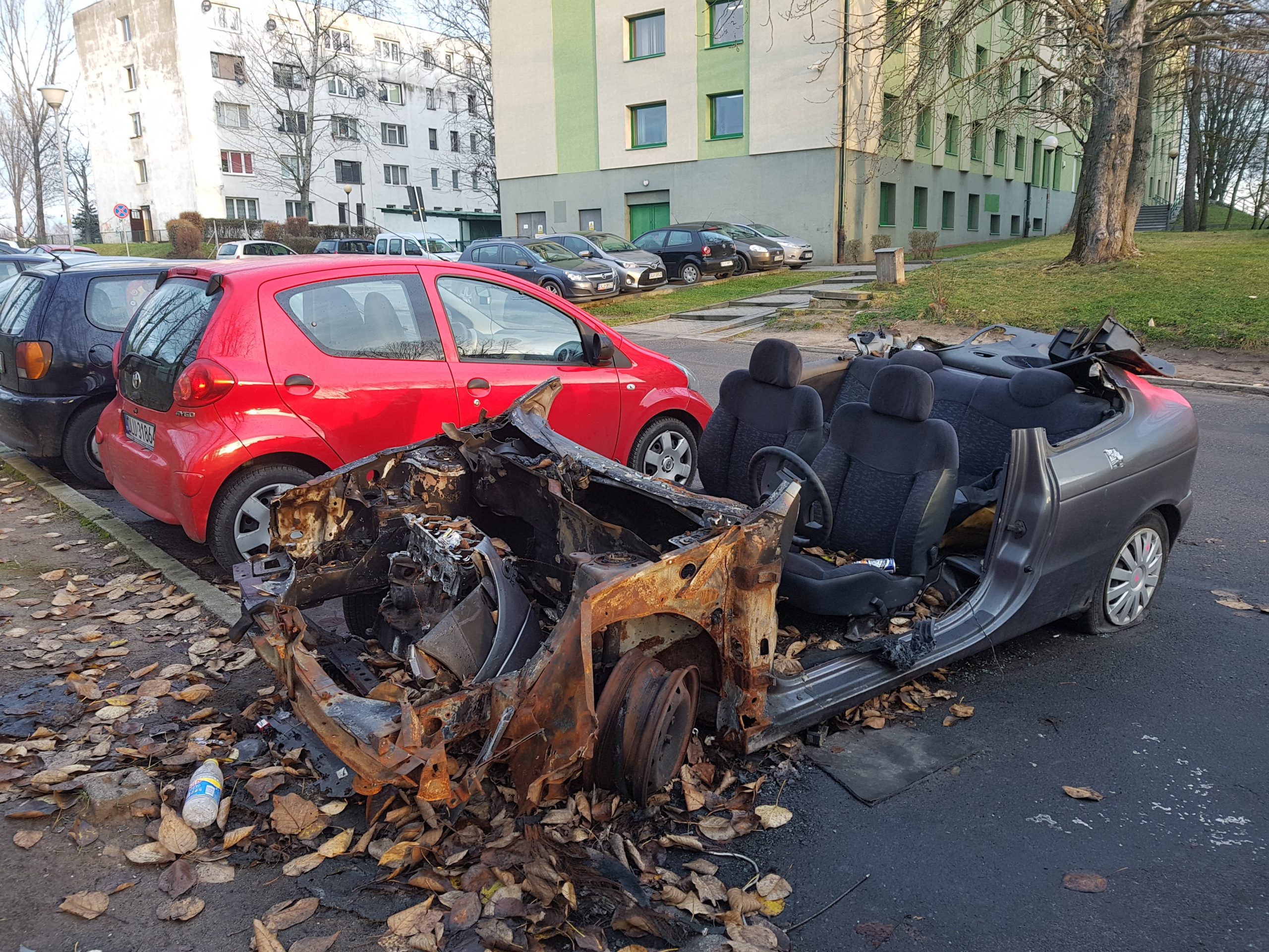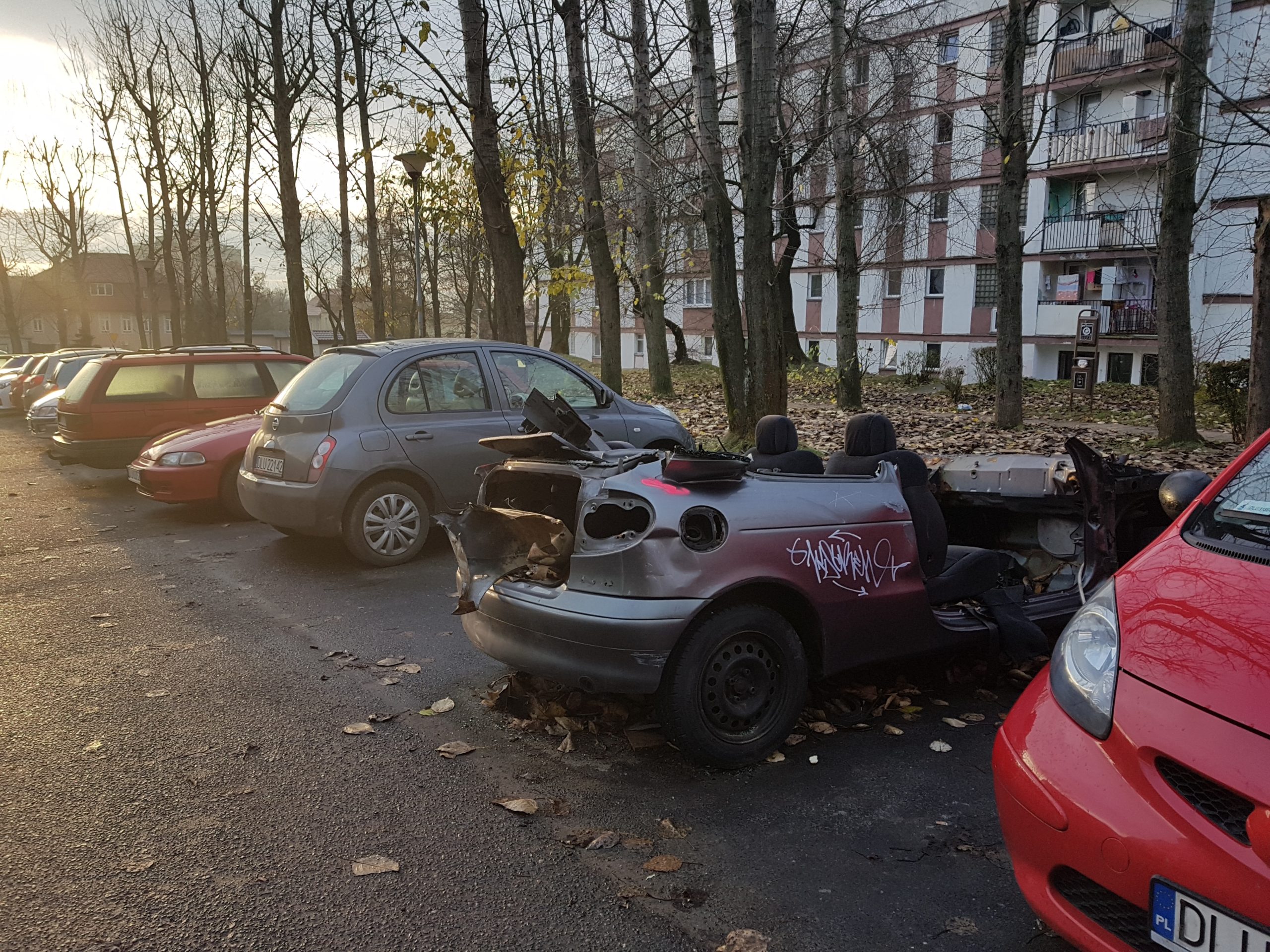 Złodzieje ukradli wszystko, co mogło się przydać lub dało się spieniężyć. Wycięto nawet dach pojazdu. Po leżących wewnątrz puszkach, widać, że odbywały się tam też libacje alkoholowe. – Długo ten wrak będzie jeszcze straszył? – pyta jeden z lubinian, wskazując na samochód zaparkowany obok urzędu skarbowego.