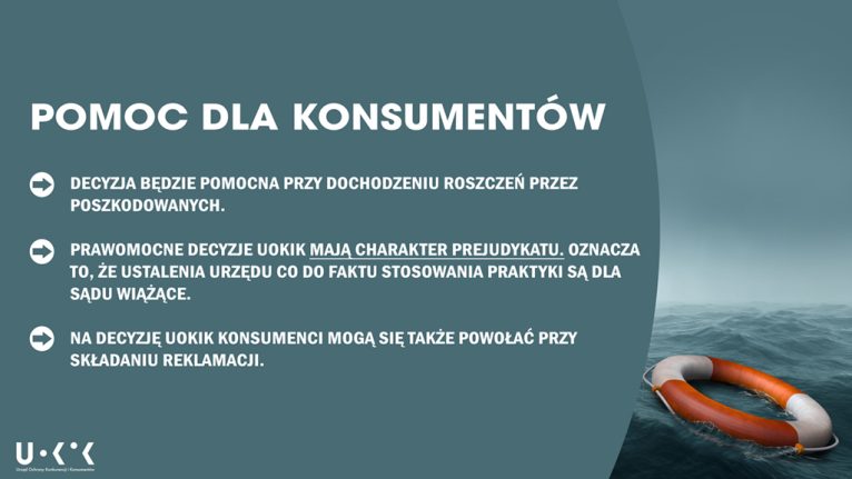 Prawomocna decyzja prezesa UOKiK stwierdzająca naruszenie prawa przez przedsiębiorcę ma charakter prejudykatu. Oznacza to, że ustalenia urzędu co do faktu stosowania praktyki są wiążące dla sądów powszechnych w przypadku rozpatrywania indywidualnych spraw z udziałem konsumentów w zakresie zakwestionowanych w decyzji praktyk. Na decyzję UOKiK konsumenci mogą się także powołać przy składaniu reklamacji.