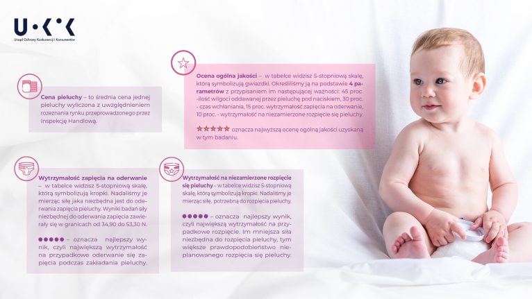 – W kolejnej odsłonie z cyklu „UOKiK testuje” porównaliśmy 10 marek pieluch jednorazowych, które przebadaliśmy w naszych akredytowanych laboratoriach. Badania UOKiK są rzetelne, niezależne i wiarygodne. Parametry, które analizujemy, wybieramy zawsze z myślą o konsumentach tak, aby dostarczyć im przydatnych informacji i wartościowych ocen. Wyniki badania pieluch również dla nas okazały się dużym zaskoczeniem, w szczególności względem marek posiadających bodajże najlepszą rozpoznawalność na polskim rynku. Mam jednak nadzieję, że po lekturze raportu wybór pieluch będzie dla Państwa nieco łatwiejszy – mówi Prezes UOKiK Tomasz Chróstny.