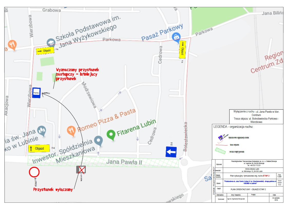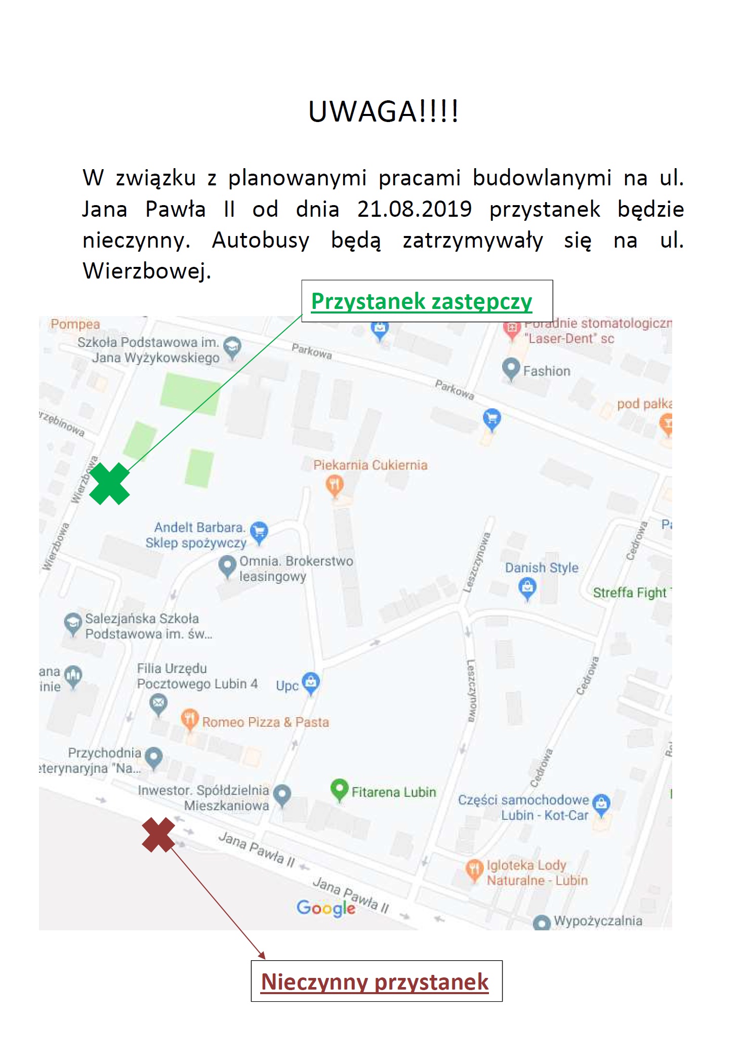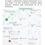 Pasażerów komunikacji publicznej też czeka ważna zmiana. Z użytku wyłączony zostanie przystanek znajdujący się przy ul. Jana Pawła II. Pasażerowie będą mogli korzystać z zastępczego przy ulicy Wierzbowej.