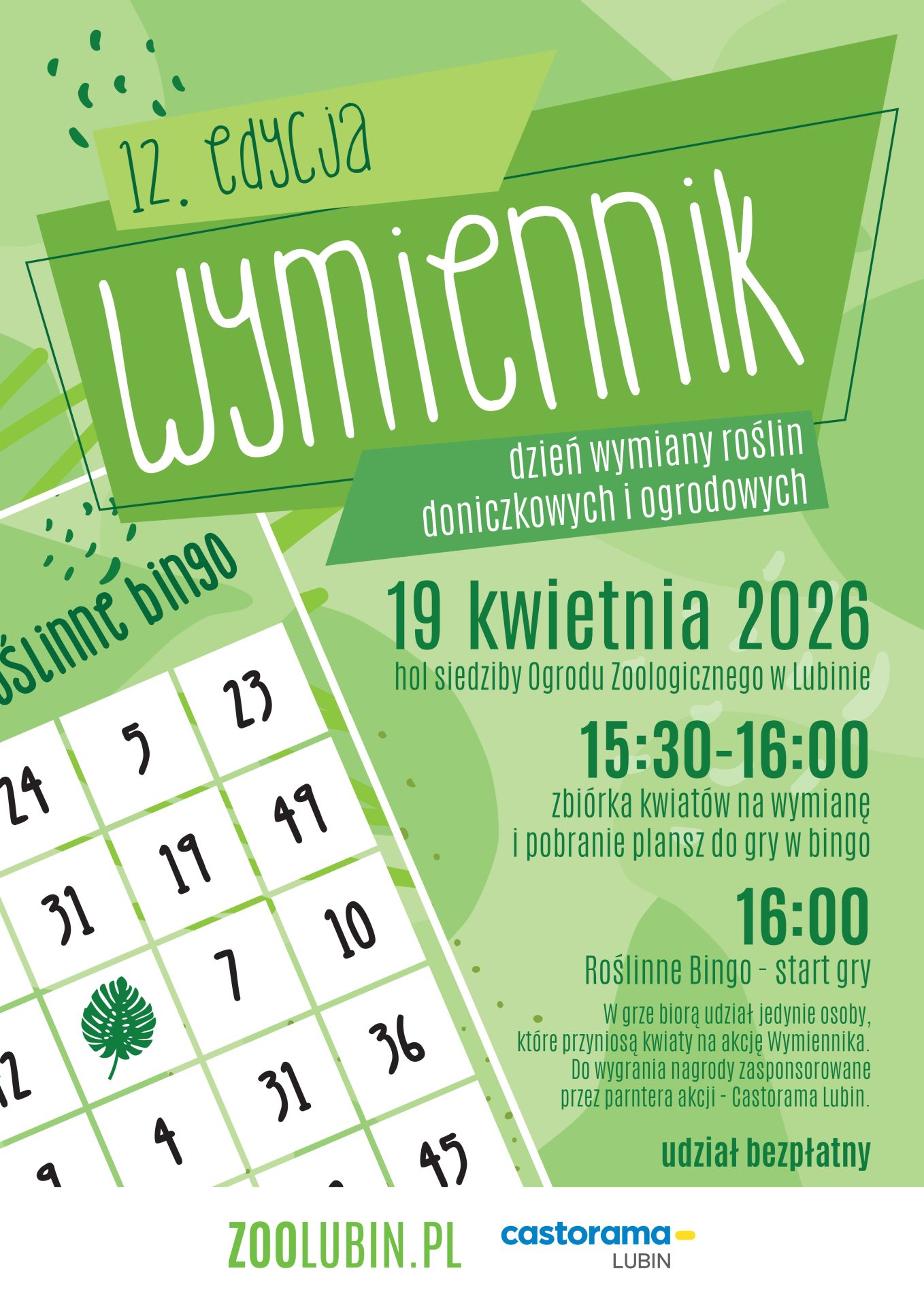 Roślinny do wymiany można przynosić od godziny 15.30 do 16. W tych też godzinach będzie można pobrać plansze do gry w bigo. Wymiana roślin to bowiem niejedyna atrakcja zaplanowana przez Ogród Zoologiczny.