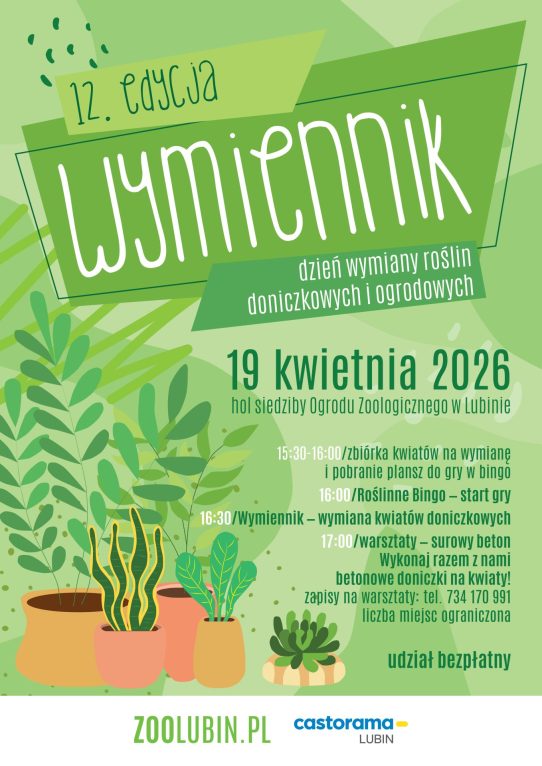 Będzie okazja, by zdobyć nową roślinę, ale i wziąć udział w warsztatach robienia betonowych doniczek – lubińskie zoo zaprasza wszystkich na kolejną, 12. już edycję akcji Wymiennik.