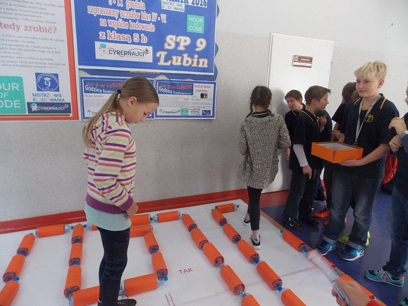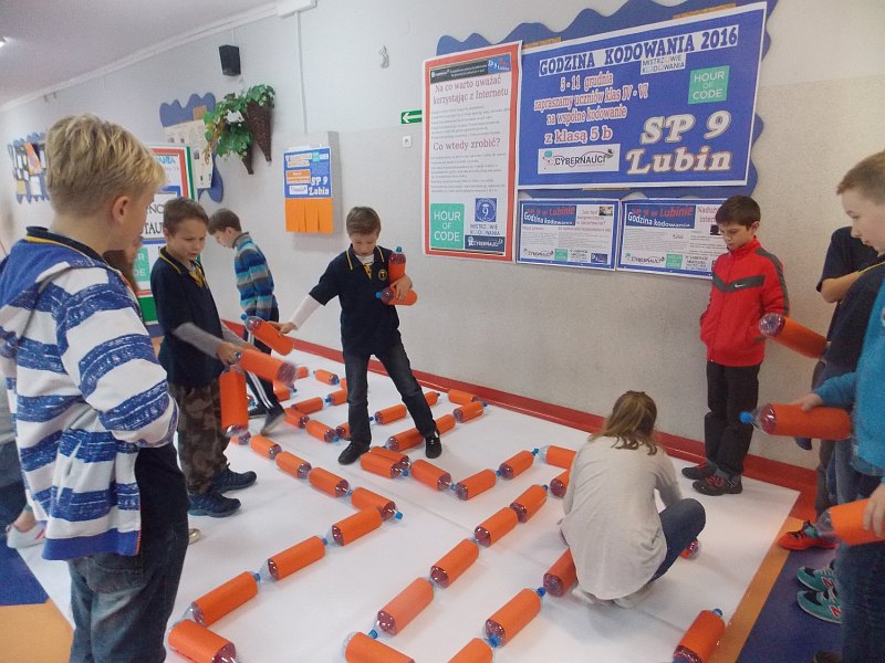 Godzina Kodowania, organizowana w ramach Tygodnia Edukacji Informatycznej (Computer Science Education Week, USA), jest największą inicjatywą edukacyjną w historii, adresowaną do uczniów z całego świata. W Szkole Podstawowej nr 9 w Lubinie oprócz lekcji w pracowniach komputerowych w Scratchu odbywały się również nietypowe zajęcia z kodowania, do których nie było potrzebne przygotowanie informatyczne czy w zakresie programowania.