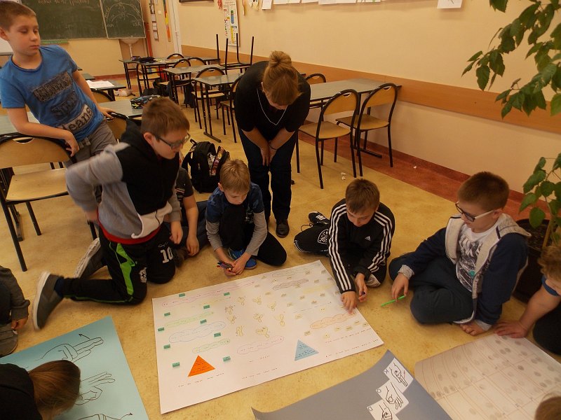 „W labiryncie Minotaura” nie były jedynymi zajęciami w ramach Godziny Kodowania. Klasa IV a z Elżbietą Tomczyszyn przygotowała kodowanie w różnych językach. Głównym hasłem było kodowanie w języku migowym.