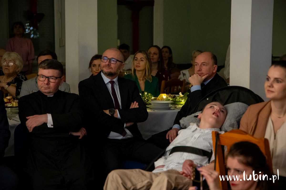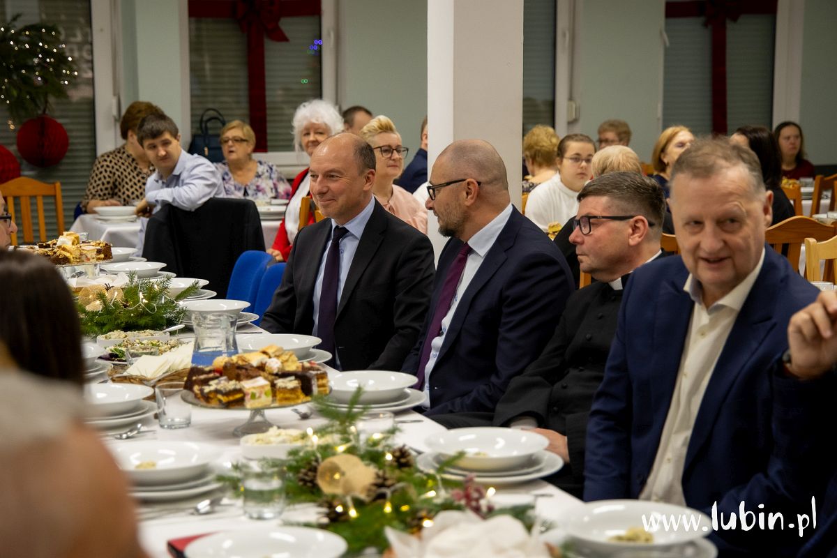 Zaproszeni na spotkanie wigilijne goście nie zawiedli. Jak zwykle przy świątecznym stole zasiedli m.in. prezydent Lubina Robert Raczyński, starosta lubiński Paweł Kleszcz, przewodnicząca rady powiatu Jadwiga Musiał i przewodniczący rady miejskiej Tomasz Górzyński.