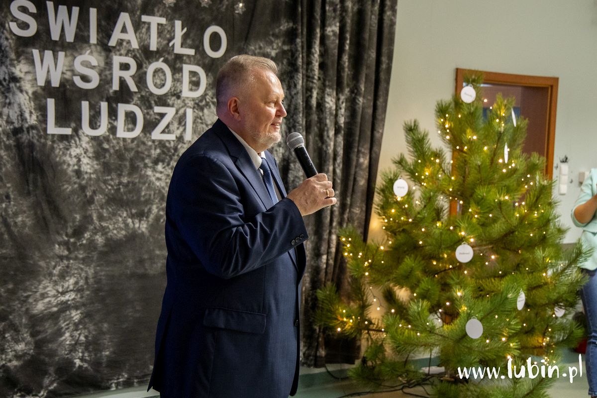 – To jedno z przyjemniejszych spotkań w roku. Zawsze warto tutaj być z ludźmi pełnymi uśmiechu, energii i radości, po to żeby przełamać się opłatkiem i życzyć zdrowych, spokojnych, wesołych świąt, pełnych prezentów, ale przede wszystkim zdrowia i spełnienia marzeń. Ta radość, która płynie z kolęd oraz pastorałek i ze wszystkiego tego, co jest tutaj dookoła, jest najważniejsza. Myślę, że już samymi świętami, sprzątaniem, zakupami nie musimy się wtedy martwić – mówi starosta lubiński Paweł Kleszcz.
