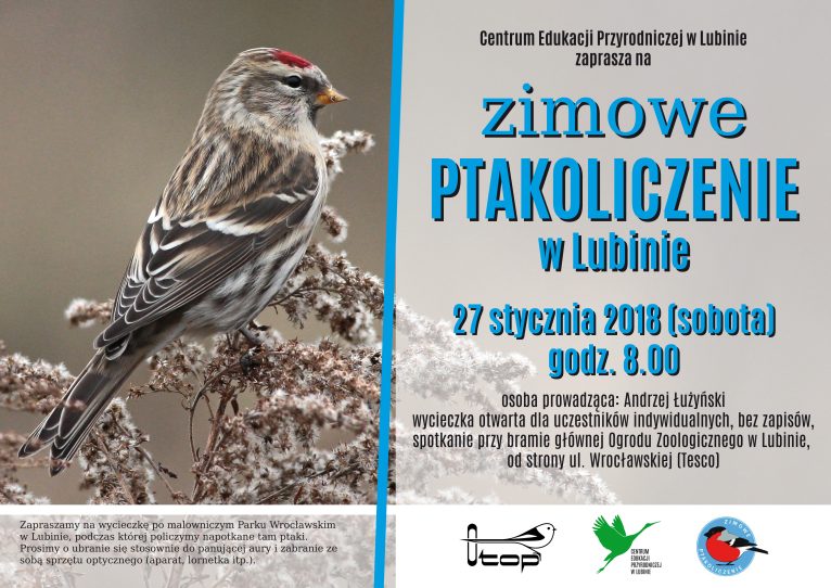Obserwatorów ptaków oprowadzać będzie pracownik Centrum Edukacji Przyrodniczej Andrzej Łużyński. Na spotkanie nie trzeba się wcześniej zapisywać, wystarczy 27 stycznia pojawić się o godzinie 8 pod bramą parku od strony Tesco.