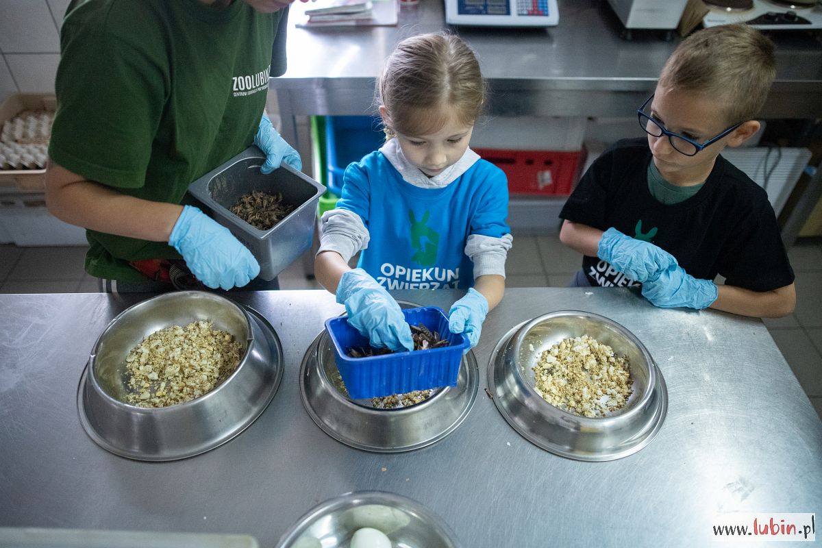 Dzieci w „pracy” pojawiły się o 8 rano i właśnie szykowanie jedzenia dla mieszkańców zoo było ich pierwszym zadaniem. A produkty były dla nich dość zaskakujące, bo między innymi mrożone szczury i myszy czy żywa szarańcza i mączniki. Później połowa z nich zajęła się karmieniem ptaków, a druga dwójka – zwierząt gospodarskich.