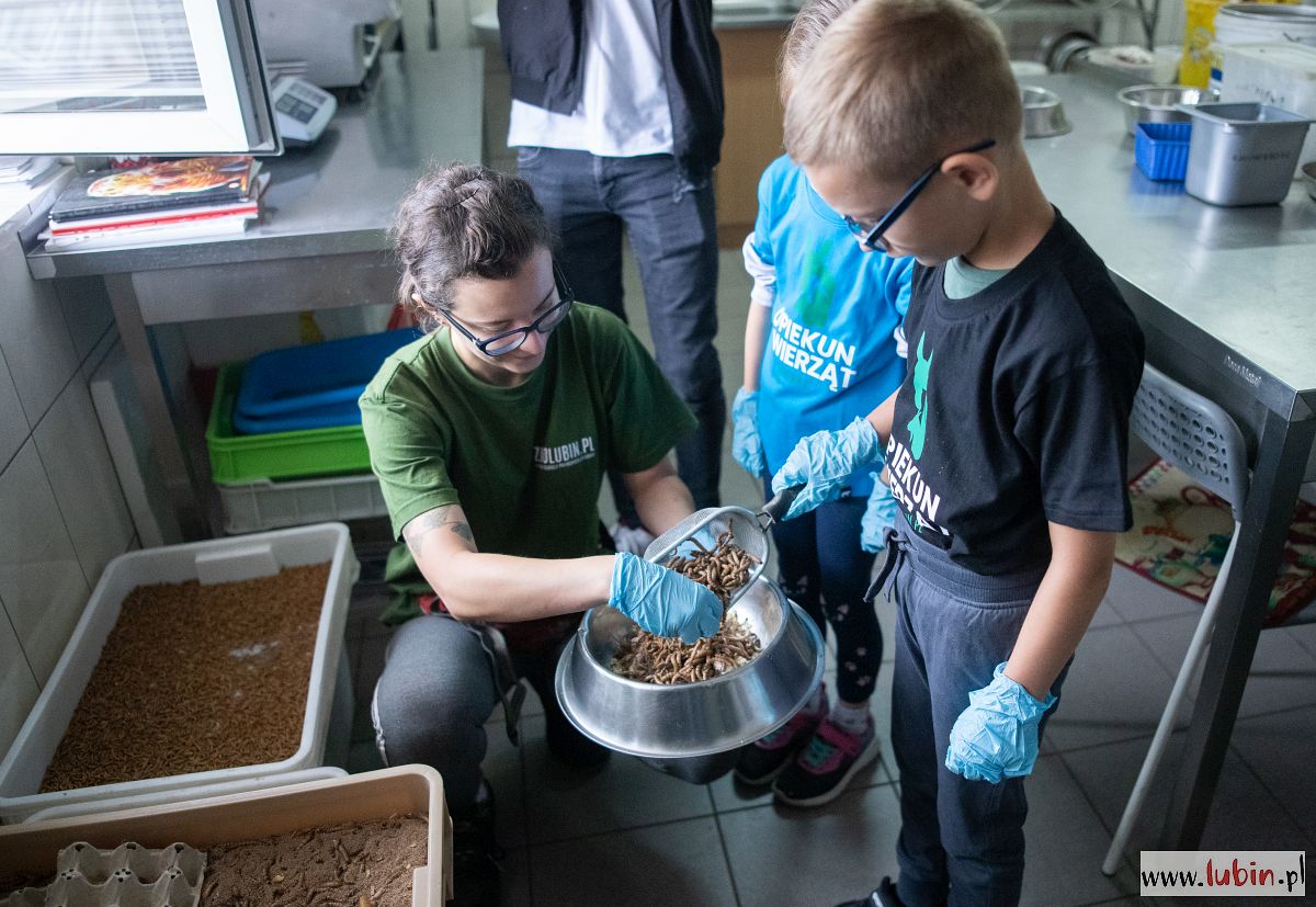 – Wszystko jest najfajniejsze – stwierdza po krótkim namyśle 7-letnia Liwia z Grzymalina, która – gdy z nią rozmawiamy – akurat jest w trakcie karmienia ptaków. – Najpierw przygotowywaliśmy jedzenie, szykowaliśmy jajka, ziarenka i robaki – wylicza, przyznając, że bała się żywej, ruszającej się szarańczy i mączników, które składają się na pokarm mieszkańców zoo, ale mimo wszystko dała radę.