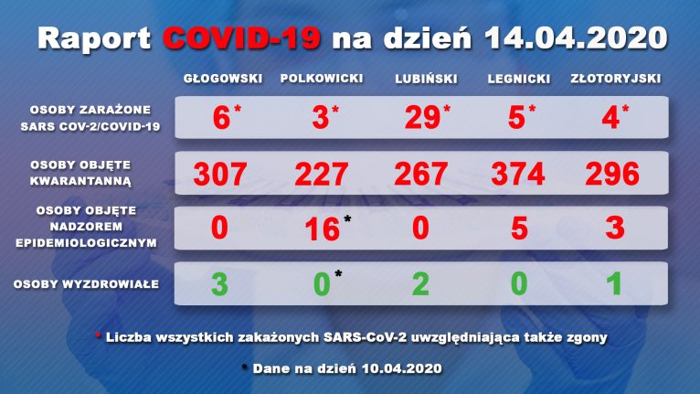Do tej pory w powiecie lubińskim odnotowano w sumie 29 przypadków zakażenia koronawirusem. W tej chwili 267 osób objętych jest kwarantanną, a 17 izolacją. 8 osób jest hospitalizowanych ze względu na podejrzenie SARS-CoV/COVID-19.