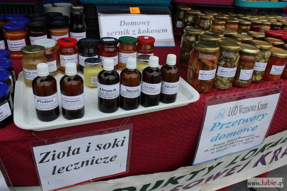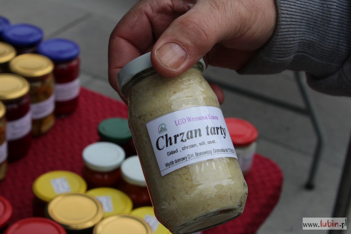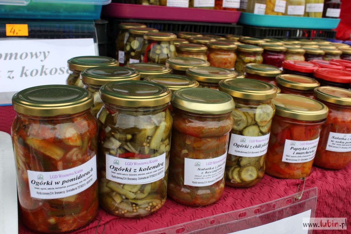 Oprócz dekoracji – również coś na ząb. Na skraju rynku zaparkowało kilka food trucków, możemy zjeść ciepłego oscypka z żurawiną czy kupić domowe przetwory. – Mam świeżą ćwikłę, chrzan, ale i marynowane ogórki, patisony, lecza – wylicza Henryk Bronowicki. Razem z żoną zajmują się tym od 20 lat w oddalonej o 40 km od Lubina Gromadce.