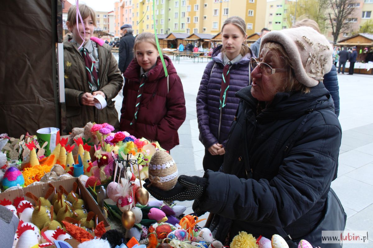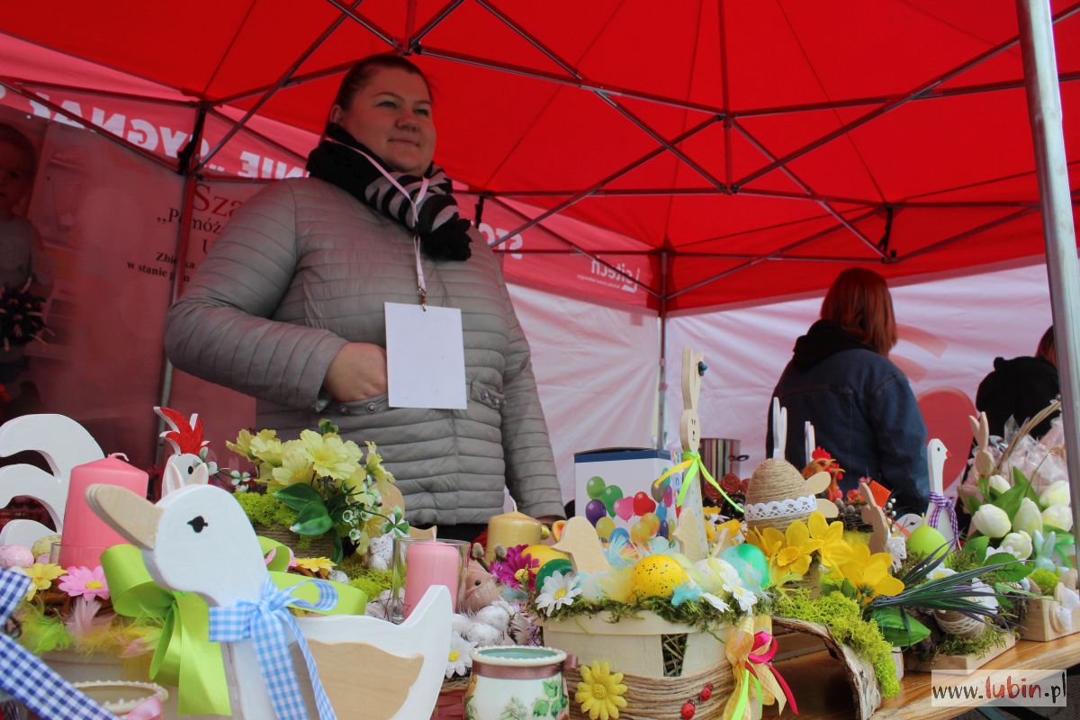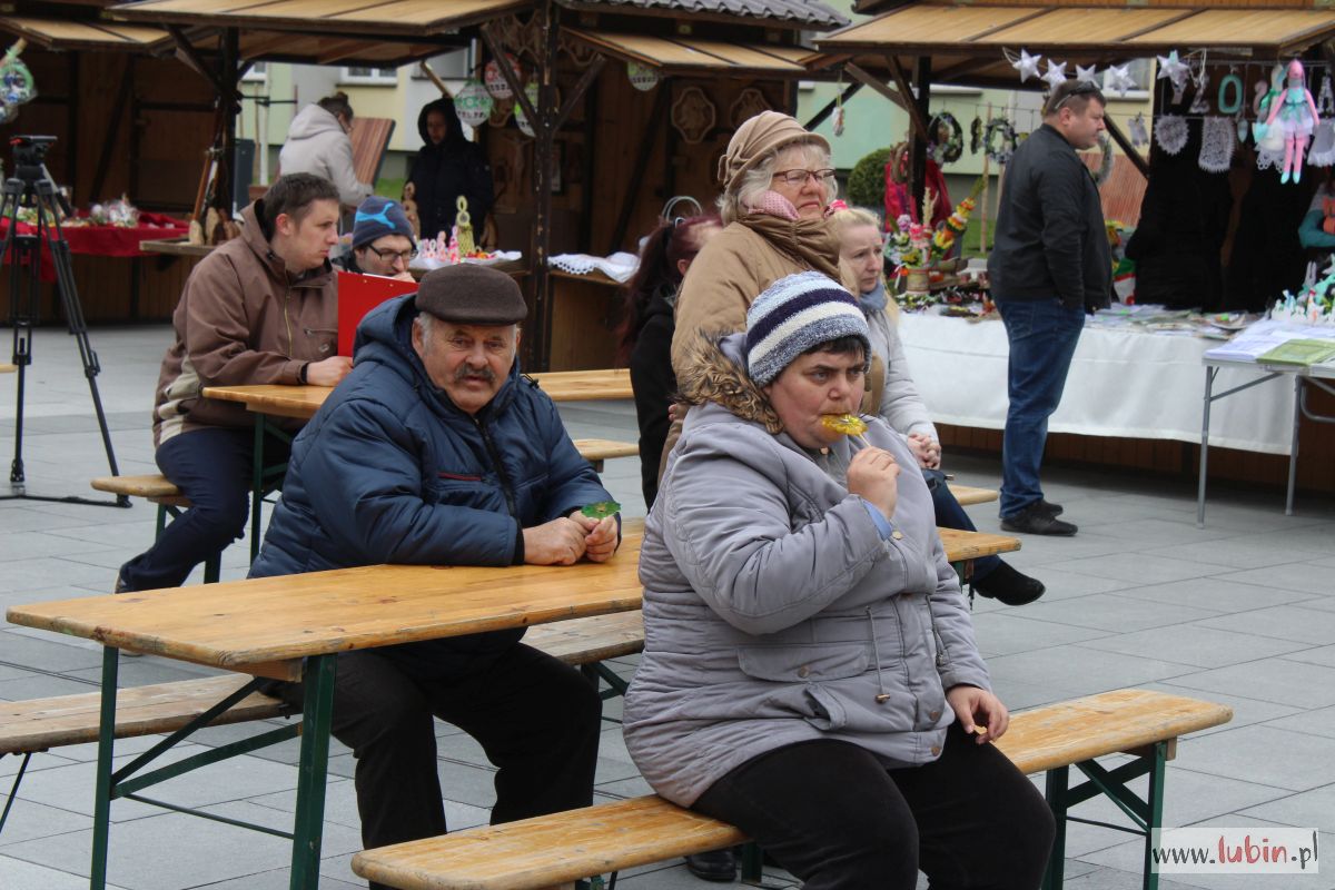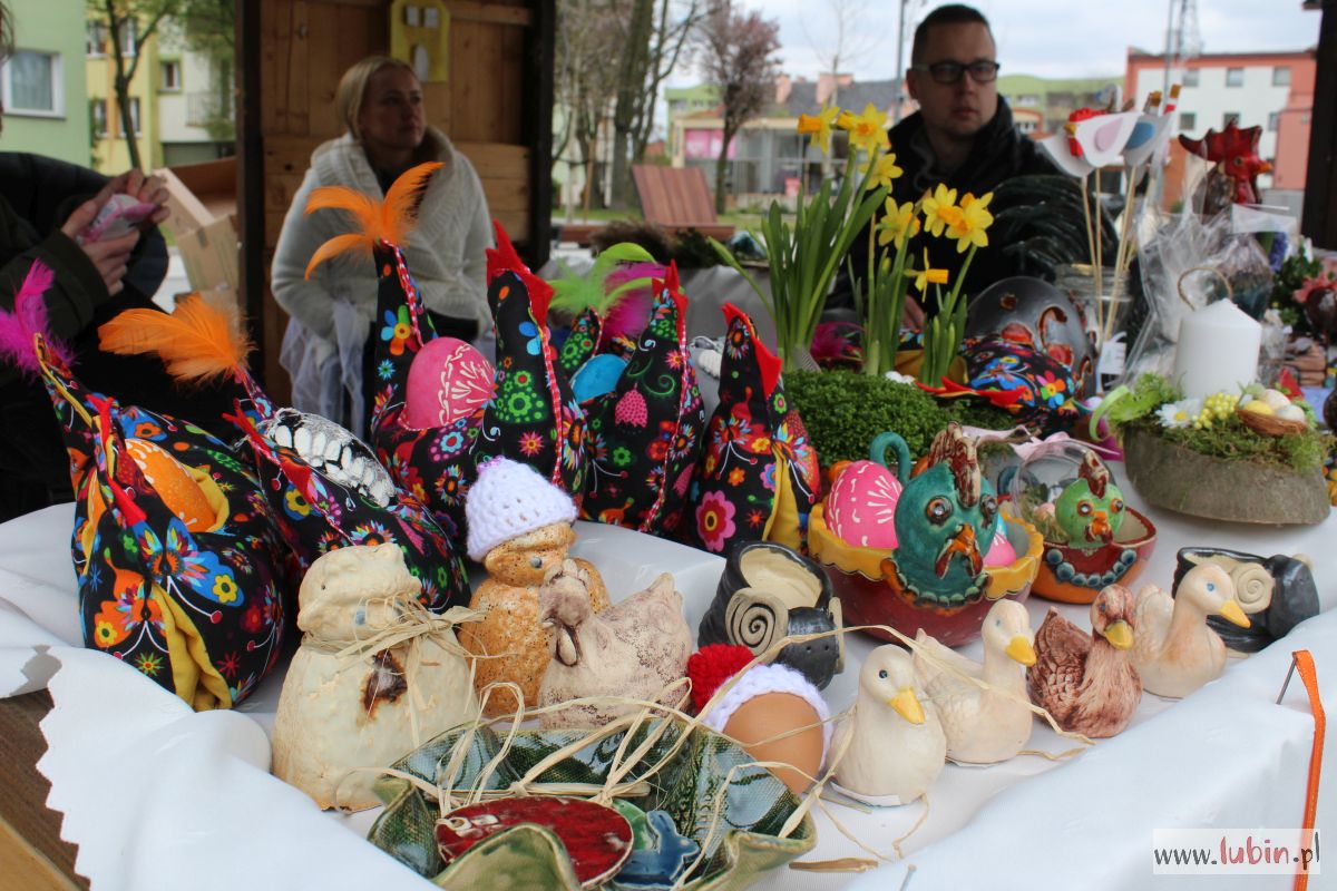 To już druga edycja Jarmarku Wielkanocnego w sercu miasta. Impreza ta od wielu lat odbywała się w Centrum Kultury Muza. Teraz jarmark się rozrósł i przeniósł pod ratusz. – W 21 drewnianych domkach i kilku namiotach mamy 47 wystawców, którzy oferują nam rozmaite produkty – mówi Elżbieta Miklis, kierownik Domu Dziennego Pobytu Senior w Lubinie, jednego z organizatorów imprezy.