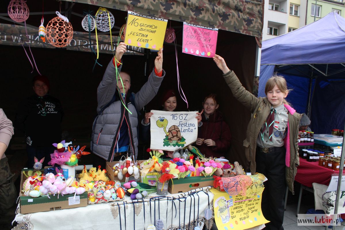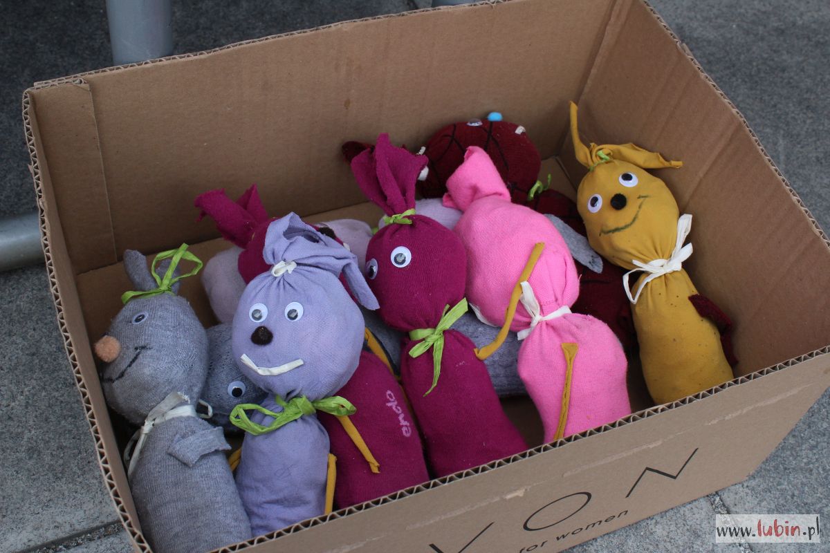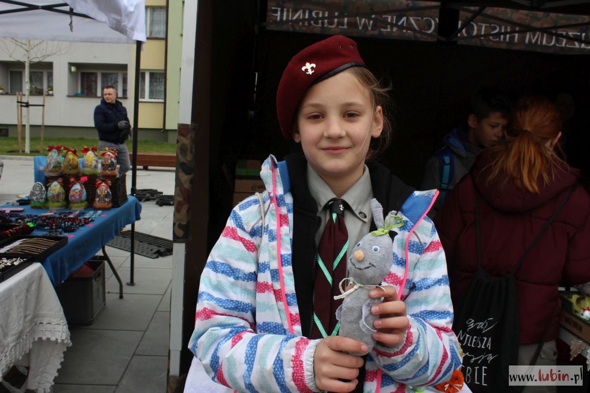 Sprzedawcy to nie tylko dojrzali ludzie, ale i małe smyki. Lubińskie zuchy i harcerze oferują rozmaite ekologiczne ozdoby: baranki, owieczki czy wielkanocne kurczaczki. Do wykonania puchatego zajączka wykorzystali podpinkę ze starej kurtki, a zgredek powstał ze skarpetki. Wszystko jest szyte i klejone ręcznie, a zuchy i harcerze z małą pomocą rodziców, pracowali nad tym od miesiąca.