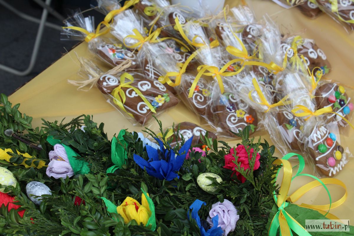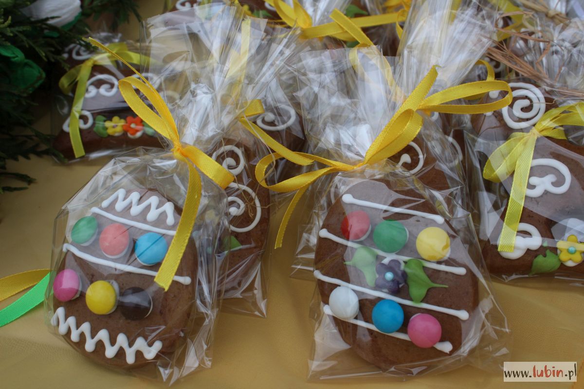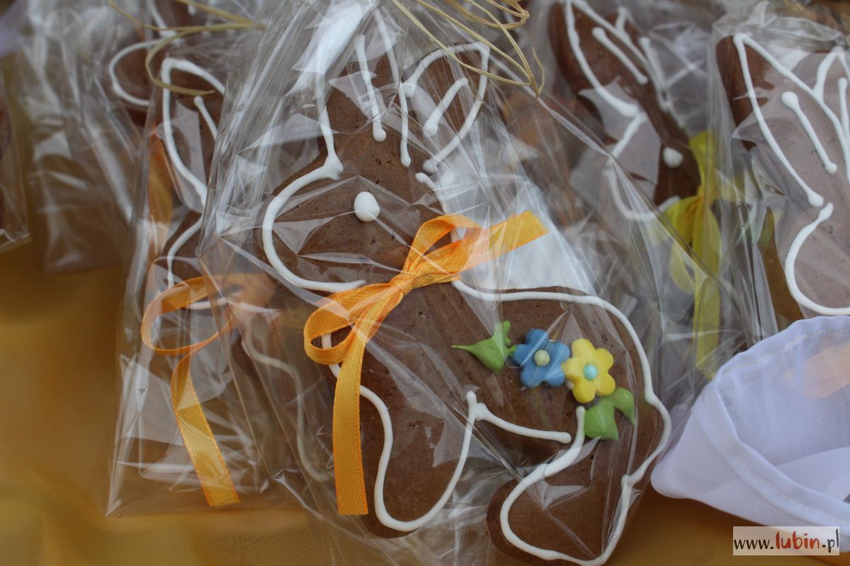Te ostatnie mogą stanowić pyszną ozdobę wielkanocnego koszyczka i stołu. Jak zaręcza lubinianka Agnieszka Skoczylas, która je wypieka – to pyszne i miękkie pierniczki, a przepis był dopracowywany latami. – To świeży wyrób, wczoraj lukrowane. To prawdziwa praca taśmowa – uśmiecha się pani Agnieszka, która prócz łakoci, na swoim stoisku ma również własnoręcznie robione palmy wielkanocne.