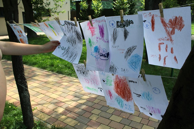 Rzeczywiście dzieci chętnie popisywały się swoją wiedzą. – Ja byłam tutaj na wakacjach już w ubiegłym roku – przyznaje Natalia. – Podoba nam się, jest fajnie – dodają Kaja, Maja i Nell, wycinając i rysując drzewa. Dziewczynki, podobnie jak ich koledzy i koleżanki, przy tworzeniu prac plastycznych puściły wodze fantazji. Bartek na przykład narysował domek na drzewie, ktoś inny zaproponował drzewo, na którym rosną pieniądze. Były też drzewa porośnięte trawą czy ptasimi piórami.