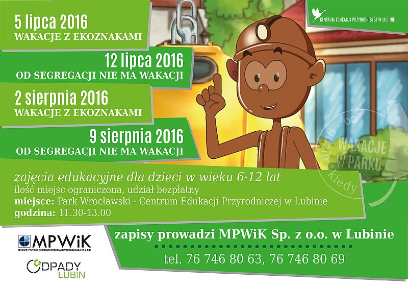 Między innymi o ekologii i segregowaniu śmieci dowiedzą się wszystkiego dzieci, które wezmą udział w wakacyjnych zajęciach w parku Wrocławskim, przygotowanych przez Miejskie Przedsiębiorstwo Wodociągów i Kanalizacji.