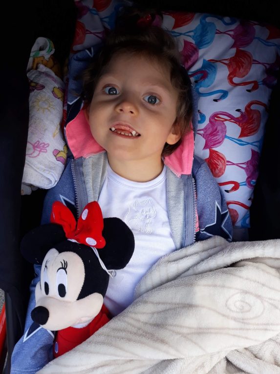 Dziś dziewczynka ma 3,5 roku i nie mówi, sama nie siedzi, nie trzyma głowy, nie bierze niczego do rączki. Choć na początku powiedziano jej rodzinie, że jest niewidoma, okazało się, że widzi, choć ma bardzo słaby wzrok.