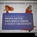 Spotkanie w Centrum Kultury „Muza” jest kolejnym etapem realizacji programu profilaktyki próchnicy. Program adresowany jest do dzieci, od 1. do 18. roku życia i będzie realizowany we współpracy z wybraną placówką medyczną. – By wszystko przebiegało właściwie, konieczna jest dobra współpraca powiatu z placówkami oświatowymi – stąd dzisiejsze spotkanie – mówi Michał Huzarski, pełnomocnik zarządu powiatu do spraw promocji i ochrony zdrowia. – Dzisiaj widzimy się z koordynatorami przedszkoli, żłobków i szkół oraz realizacją całego programu, czyli lekarzami dentystami. Porozmawiamy o naszej współpracy, o szczegółach technicznych – dodaje Huzarski.