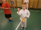 Na starcie, młodsza grupa (maluszki i dzieci – osoby trenujące od września 2014) przystąpiła do pierwszego w swoim życiu testu karate. Adepci zdawali na stopień 9.1 kyu (żółty pas i belka). Egzamin składał się z podstawowych technik karate: bloki, uderzenia oraz kopnięcia w miejscu. Indywidualnie wszyscy zdali z wynikiem pozytywnym. – Z dumą uważam, że dzieci przez ten krótki okres zrobiły duży postęp. Jest w naszej sekcji kilka perełek, co widoczne było podczas tego specjalnego treningu, jakim są egzaminy komentuje Zbigniew Dziubek, Sensei karate goju ryu.