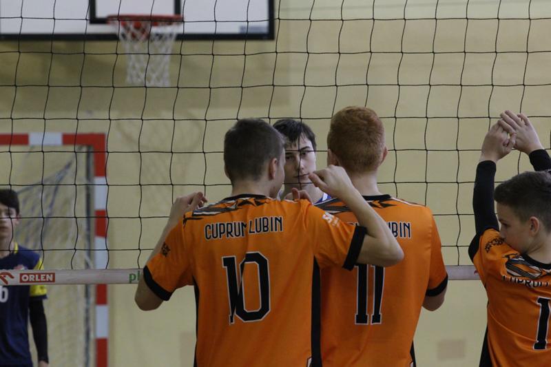Młodzicy Cuprum Lubin już w pierwszym meczu pokazali wolę walki. Niestety dla nich, bardziej doświadczony Volley Jelcz-Laskowice pokonał ich 2:0 (25:16, 25:10). Drugi mecz z KS Gwardią I Wrocław wyglądał już bardziej wyrównanie i nie był tak jednostronny. Sportowa złość siatkarzy z Lubina w pierwszym secie dała im zwycięstwo 25:23. Bardzo dobrze funkcjonowała zagrywka, co było widać przez całą część spotkania. Na trybunach gorący doping kibiców także uskrzydlił zespół. Drugiego seta „Miedziowi” przegrali 21:25 i mieliśmy tie-break. Wrocławianie kontynuowali dobrą grę, ale gospodarze deptali im po piętach. Pomimo przegranej należy pochwalić zespół, który w tej części spotkania zanotował nawet asa serwisowego.