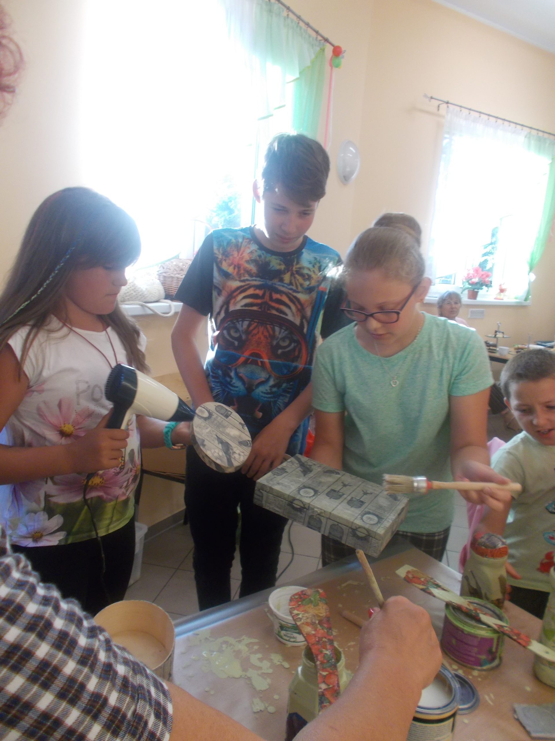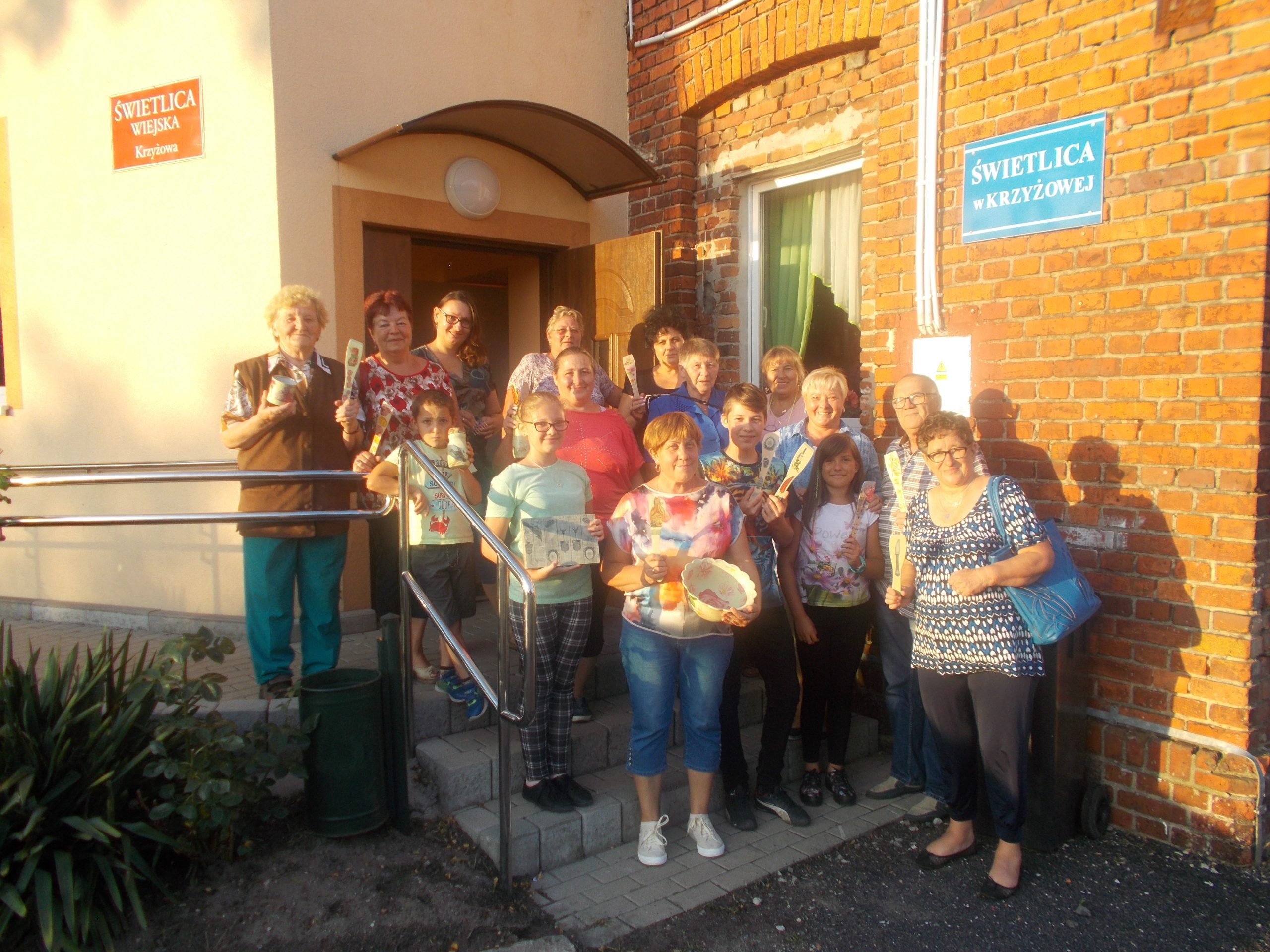 W warsztatach wzięli udział zarówno dorośli, jak i dzieci z Krzyżowej, Dłużyc, Dziewina i Ścinawy. W trakcie spotkania uczestnicy pod bacznym okiem znanej rękodzielniczki Jolanty Kiełt z Dłużyc zapoznali się z technikami wikliniarskimi i decouoage. Podczas degustacji przygotowanych przez panie przekąsek można było wymienić się doświadczeniami z dziedziny rękodzielnictwa, jak też dalszych planów i pomysłów na kontynuację takich spotkań.