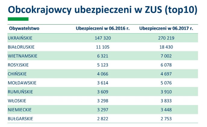 Wyniki kontroli ZUS i Państwowej Inspekcji Pracy wskazują, że praca bez umowy i bez zgłoszenia do ubezpieczenia społecznego to nadal jeden z najistotniejszych problemów polskiego rynku pracy. Problem ten dotyczy również pracy cudzoziemców. W pierwszym półroczu 2016 roku ponad 3,3 tys. obywateli państw spoza Unii Europejskiej i Europejskiego Obszaru Gospodarczego, (czyli tzw. państw trzecich) pracowało w Polsce nielegalnie. Jest to ponad 23 proc. pracowników z tych krajów objętych kontrolą. To 7 razy więcej takich przypadków niż w pierwszym półroczu 2015 roku.