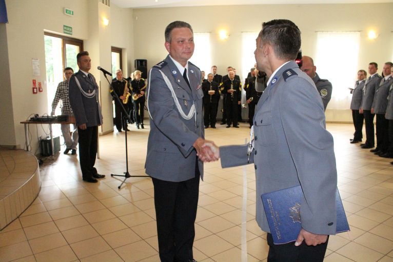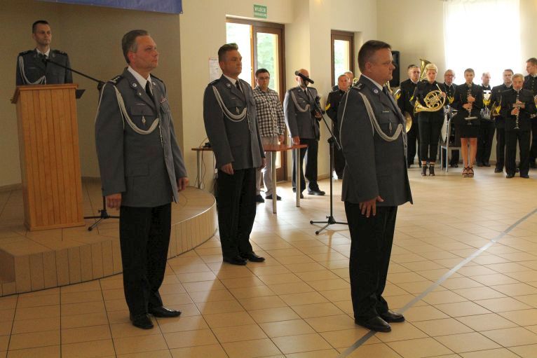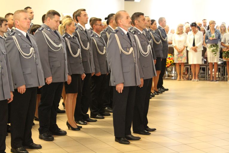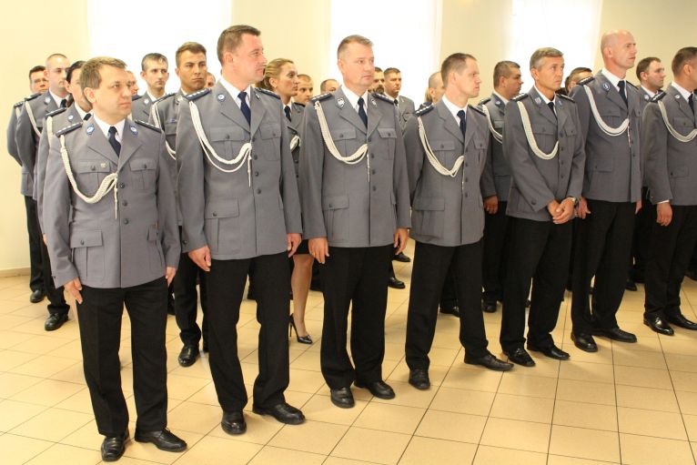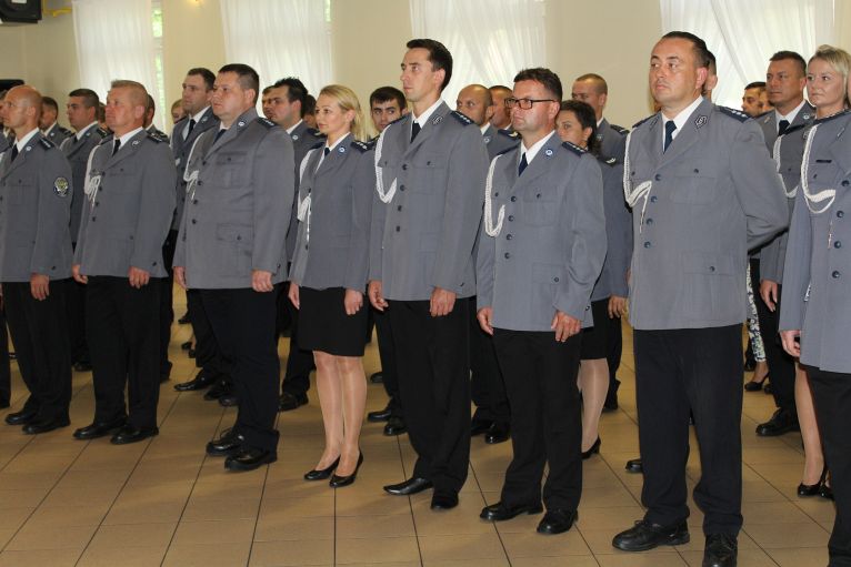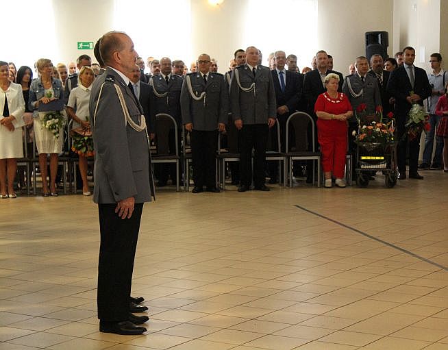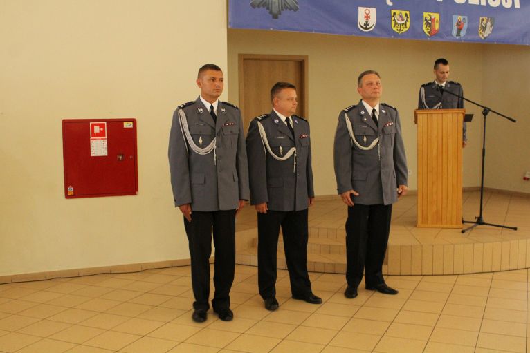 W dzisiejszej uroczystości brał udział przedstawiciel komendy wojewódzkiej, który dziękował policjantom z powiatu lubińskiego za dotychczasową służbę.