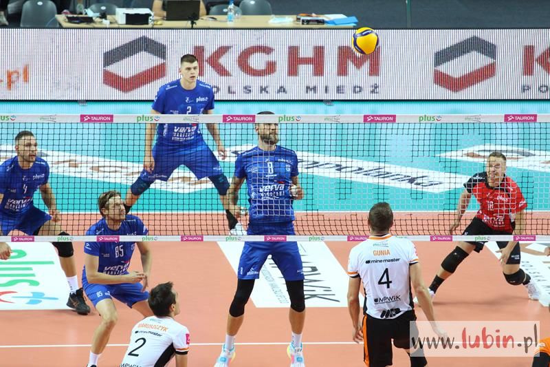 Przyjmujący Kamil Maruszczyk znakomicie radził sobie w 4 strefie. Pod siatką rywali odrzucał środkowy Dawid Gunia, a wspaniałe obrony Libero Bartka Makosia pozwalały na szybkie kontry. Dodatkowo Ronald Jimenez ponownie brylował na zagrywce, czym także zaskakiwał rywali. Pierwsze dwa sety gospodarze grali wspaniale, czując piłkę i to, że zespół tworzy solidny monolit. Później VERVA nabrała werwy i przystąpiła do odrabiania solidnej straty. Pod siatką we znaki gospodarzom dał się atakujący Jan Król czy Bartosz Kwolek na zagrywce. Lepiej też spisywali się mistrz świata z 2018 roku – Artur Szalpuk czy mistrz świata z 2014 roku Andrzej Wrona. Choć VERVA Warszawa odmieniła swój obraz gry to w dalszym ciągu po piętach deptali jej zawodnicy Cuprum, którzy ciągle wierzyli, że wywalczą na swoim terenie punkty i zwycięstwo. Emocje sięgnęły zenitu. VERVA zdołała doprowadzić do remisu w setach. Mieliśmy więc tie-breaka. Tu, powietrze nieco uszło z gospodarzy, ale walczyli do samego końca. Przegrali 12:15, ale wydarli srebrnemu medaliście mistrzostw Polski punkt. Warte podkreślenia jest również, że na boisku mogliśmy oglądać przyjmującego Nicolay Pencheva, dla którego był to pierwszy mecz na parkiecie Hali RCS.