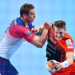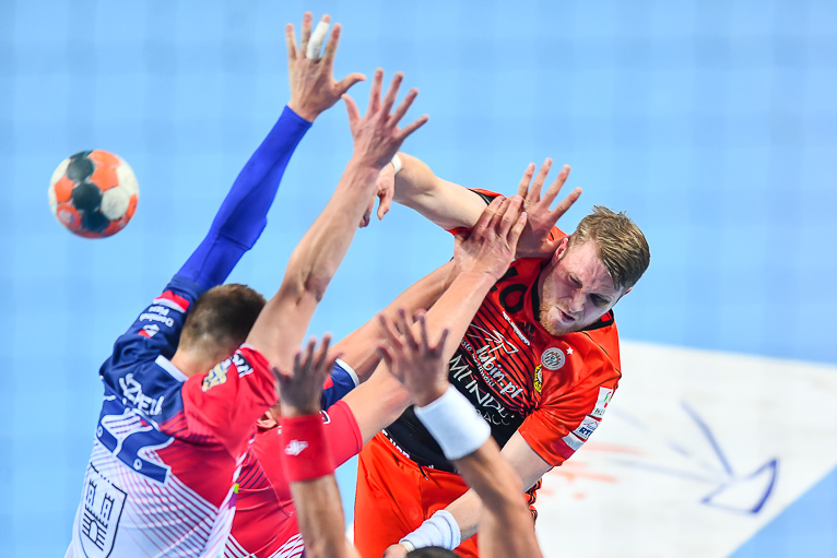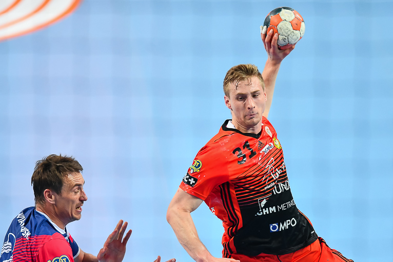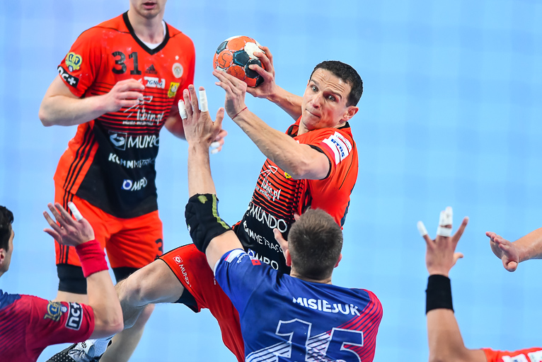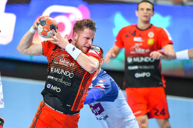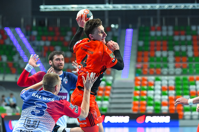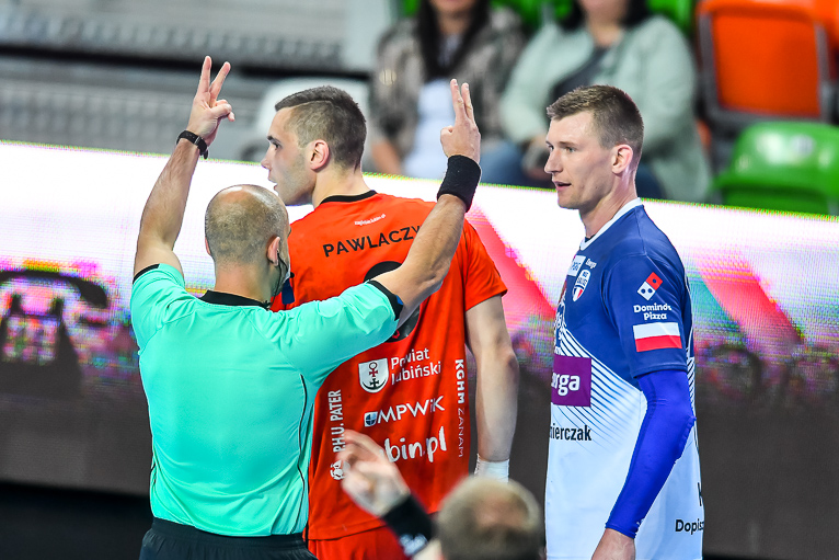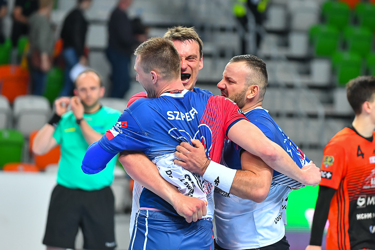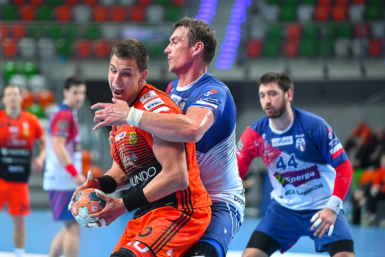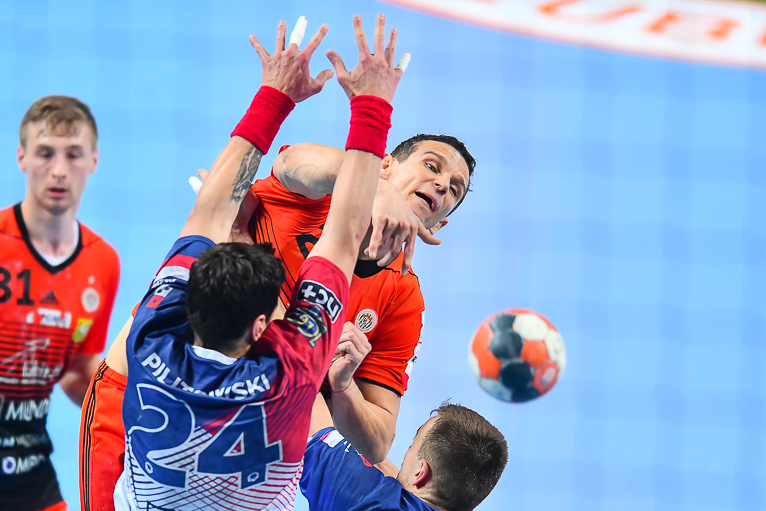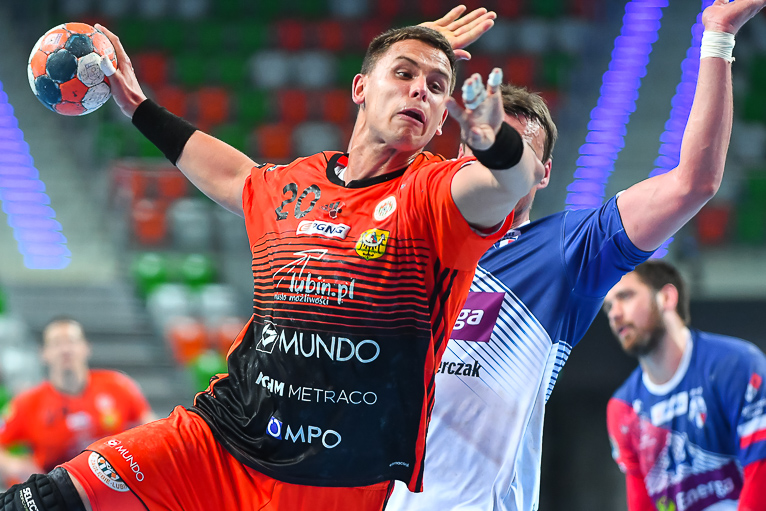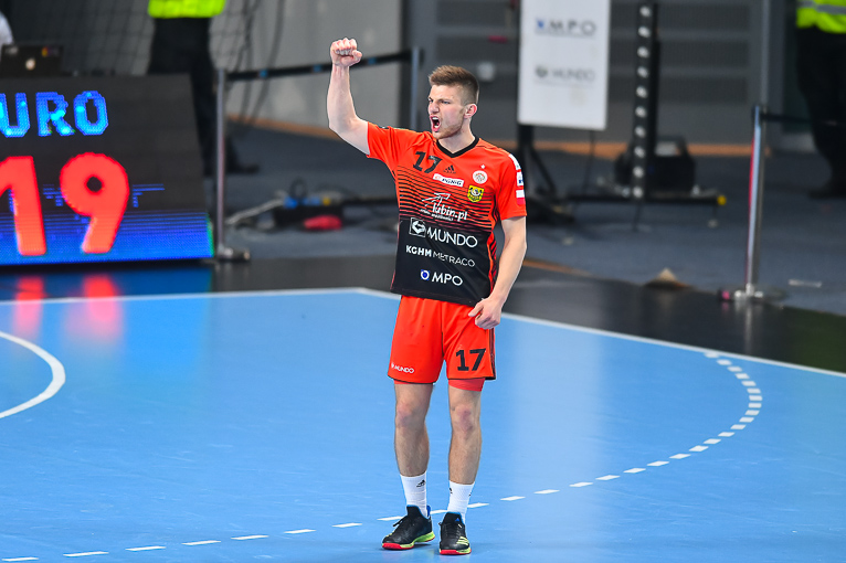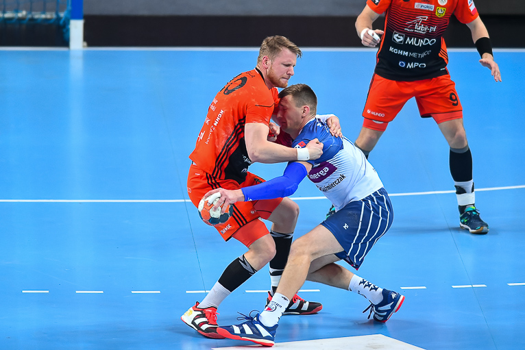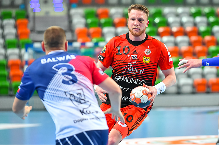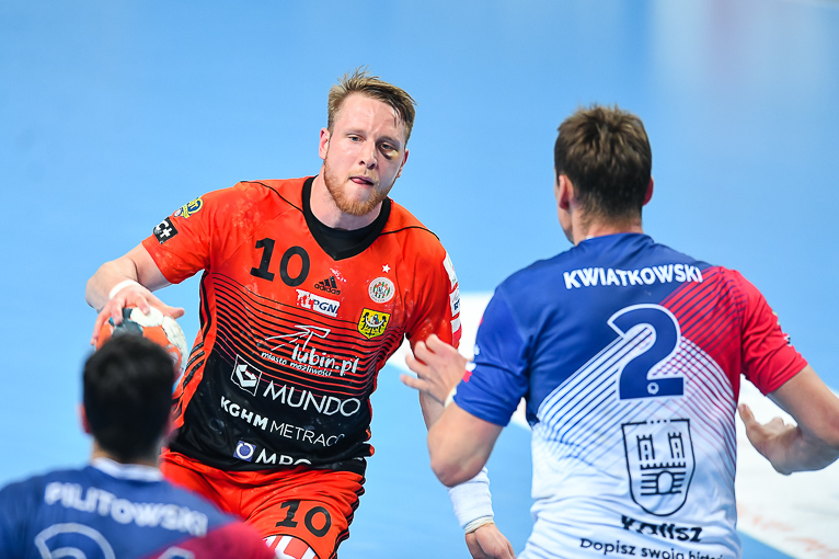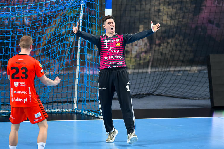 Początek drugiej połowy zwiastował dalsze emocje, gdyż wynik wciąż oscylował w okolicach remisu. Zespoły grały uważnie, wiedząc że każdy najmniejszy błąd może w tym meczu kosztować bardzo wiele. Dziesięć minut po zmianie stron lubinianie w końcu wyszli na dwie bramki – 21:19, a pierwsze trzybramkowe prowadzenie miało miejsce pięć minut później. Emocji nie było końca, gdyż goście znów zniwelowali straty. Pięć minut przed końcem swoją dziesiątą bramkę zdobył Kiryl Kniazieu i mieliśmy remis po 28. Chwilę później Maciej Pilitowski dał przyjezdnym prowadzenie. Kniazieu zdobył bramkę na 30:28, a lubinianie mieli niespełna dwie minuty na odrobienie strat. Tak się jednak nie stało…