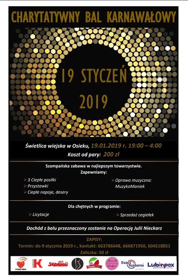 Organizatorami imprezy, która odbędzie się 19 stycznia w świetlicy w Osieku, są mama dziewczynki wraz ze swoją szwagierką – Anną Nieckarz oraz Patryk Jarkowiec – radny gminy wiejskiej Lubin.