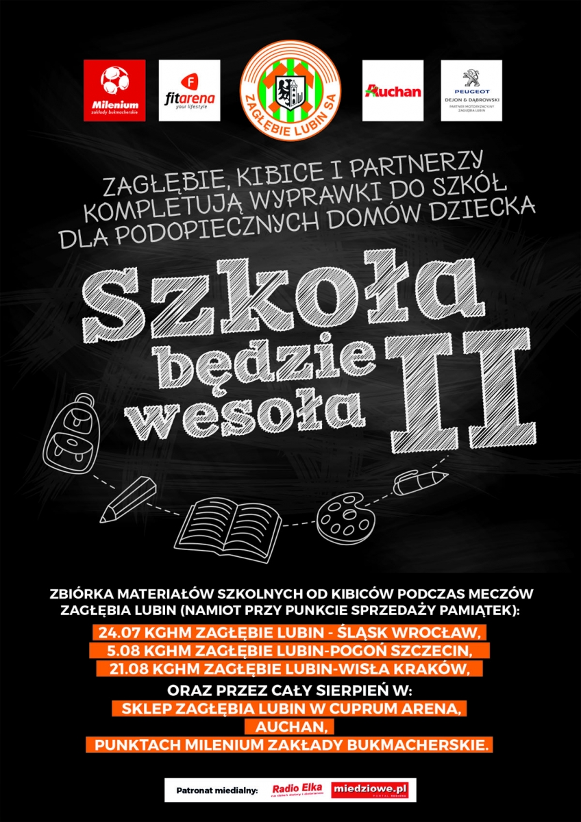 Kto nie może przyjść na mecz, a chciałby ofiarować coś od siebie, może przynieść przybory szkolne do oficjalnego sklepu Zagłębia Lubin w Galerii Cuprum Arena, do Auchan oraz punktów sprzedaży firmy Milenium.